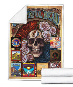 Grateful Dead Skull Floral Idea Sherpa Fleece Blanket Gifts for Family, for Couple