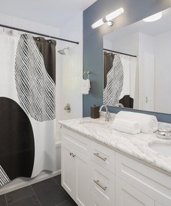 Mid Century Modern Shower Curtain, Black and White Retro Design Bath tub Curtain, Retro Design Bathroom Decor