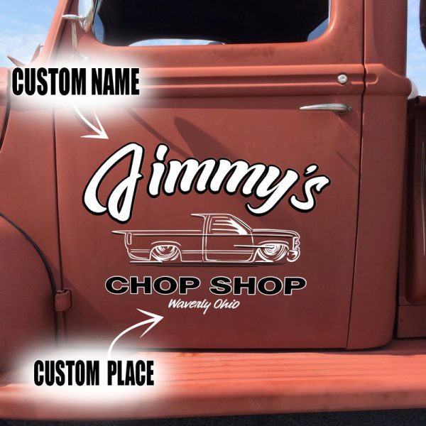 2 Pcs Personalized Chop Shop Hot Rod Garage Low Brow Art Vinyl Stickers