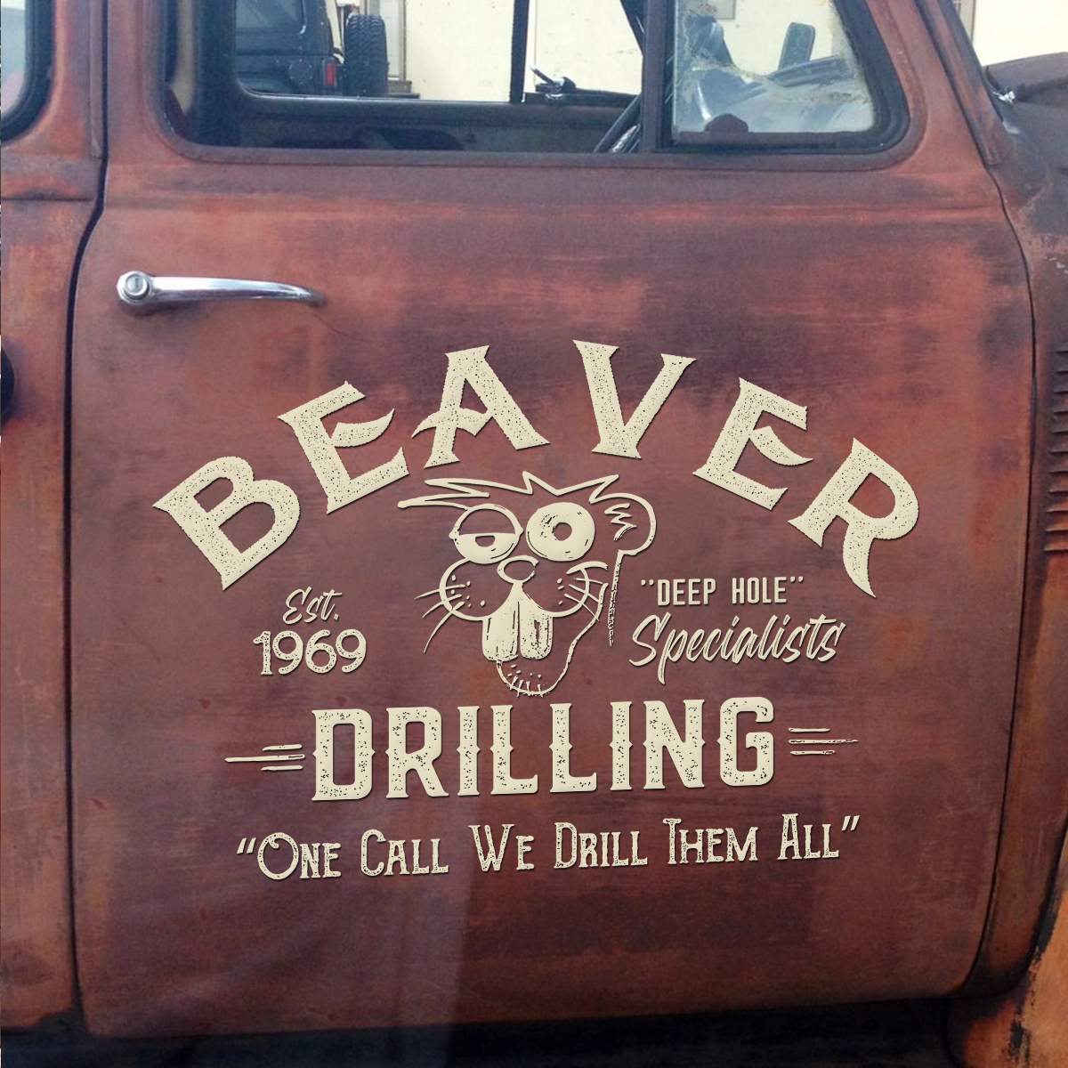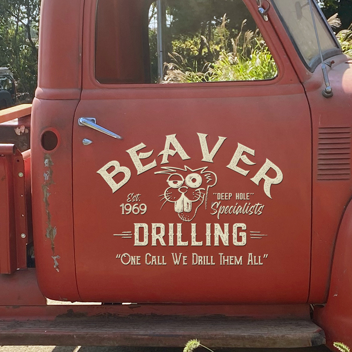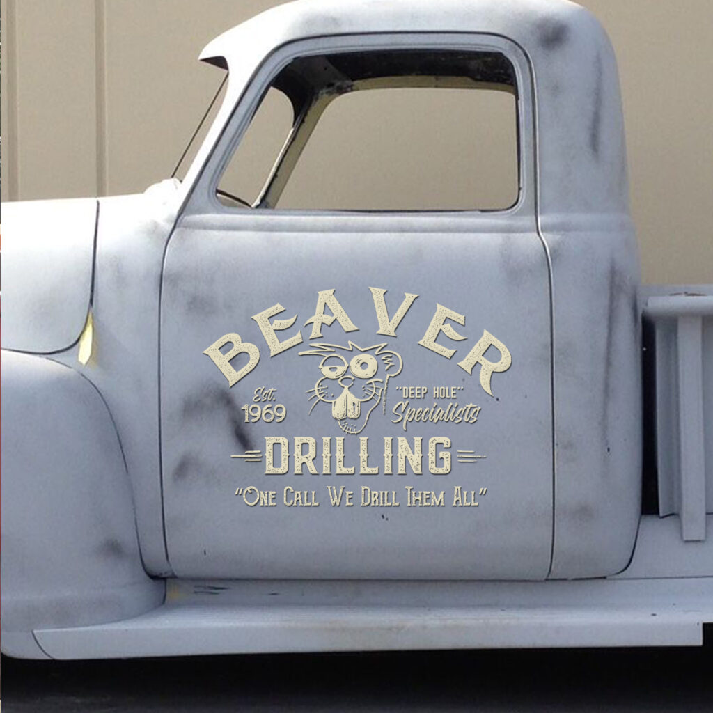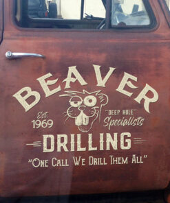2 Pcs Personalized Hot Rod Garage Beaver Drilling Vinyl Car Decals with Quote