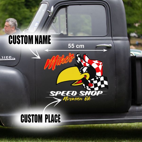 2 Pcs Personalized Hot Rod Garage Kustom Kultrure Old School Vinyl Stickers