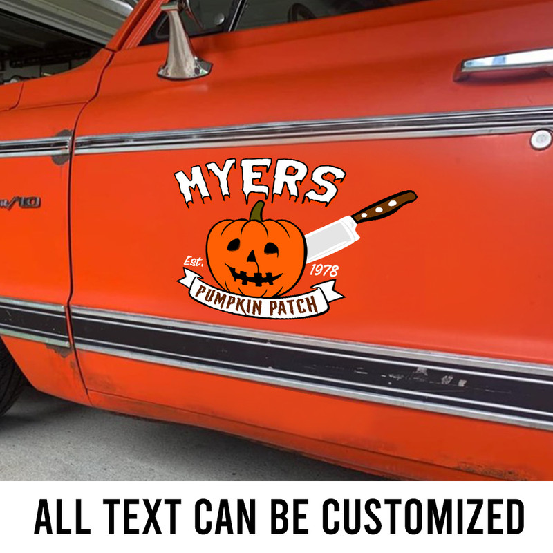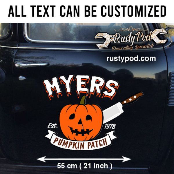 2 Pcs Personalized Hot Rod Garage Pumpkin Halloween Vinyl Sticker