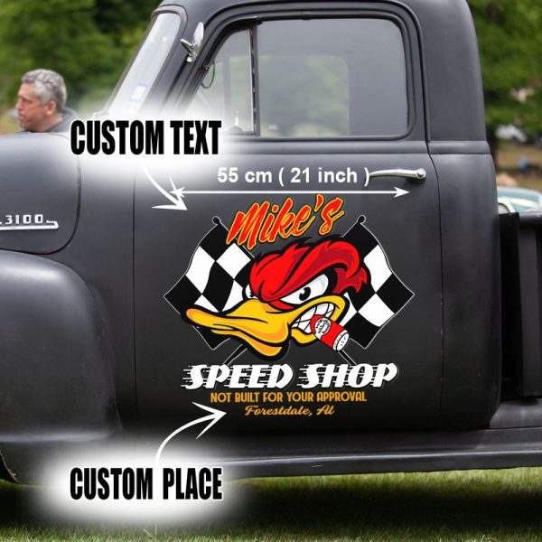 2 Pcs Personalized Hot Rod Garage Speed Shop Kustom Kultrure Old School Cars Large Stickers