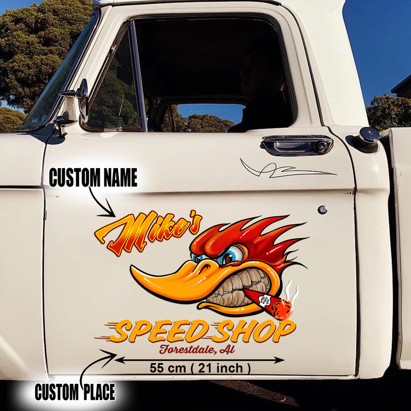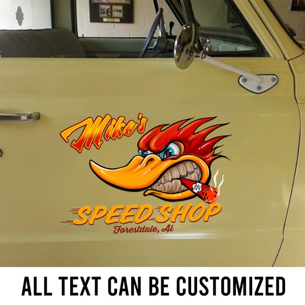 2 Pcs Personalized Hot Rod Garage Speed Shop Kustom Kultrure Old School Decals For Cars