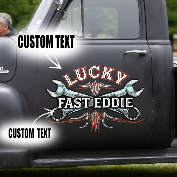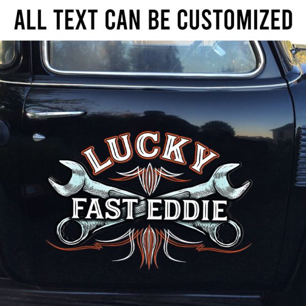 2 Pcs Personalized Pinstripe Garage Hot Rod Wrench Vinyl Stickers