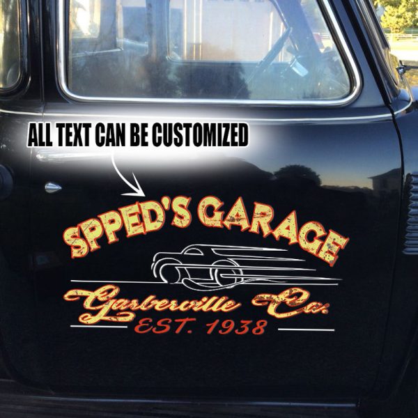 2 Pcs Personalized Pinstripe Hot Rod Garage Kustom Rat Rod Vinyl Stickers