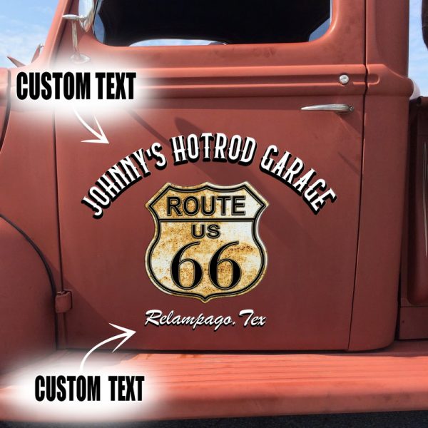 2 Pcs Personalized Route 66 Hot Rod Garage Speed Shop Pinstriping Lettering Vinyl Stickers