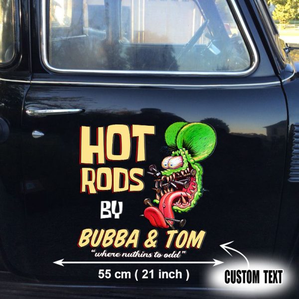 2 Pcs Personalized Speed Shop Rat Fink Vinyl Decals For Car Door