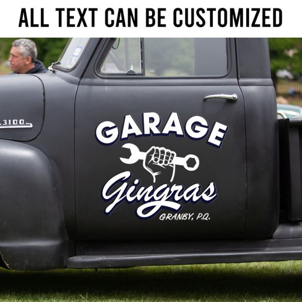 2 Pcs Personalized Vintage Garage Door Art Lettering Hot Rod Vinyl Stickers