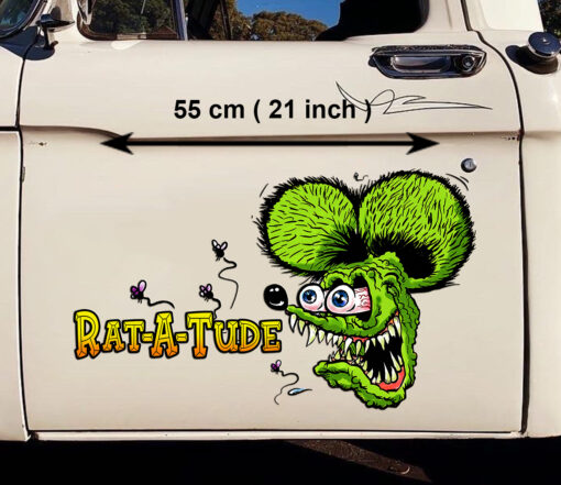2 Pcs Rat Fink A Tude Hot Rod Garage Old School Garage Vinyl Stickers