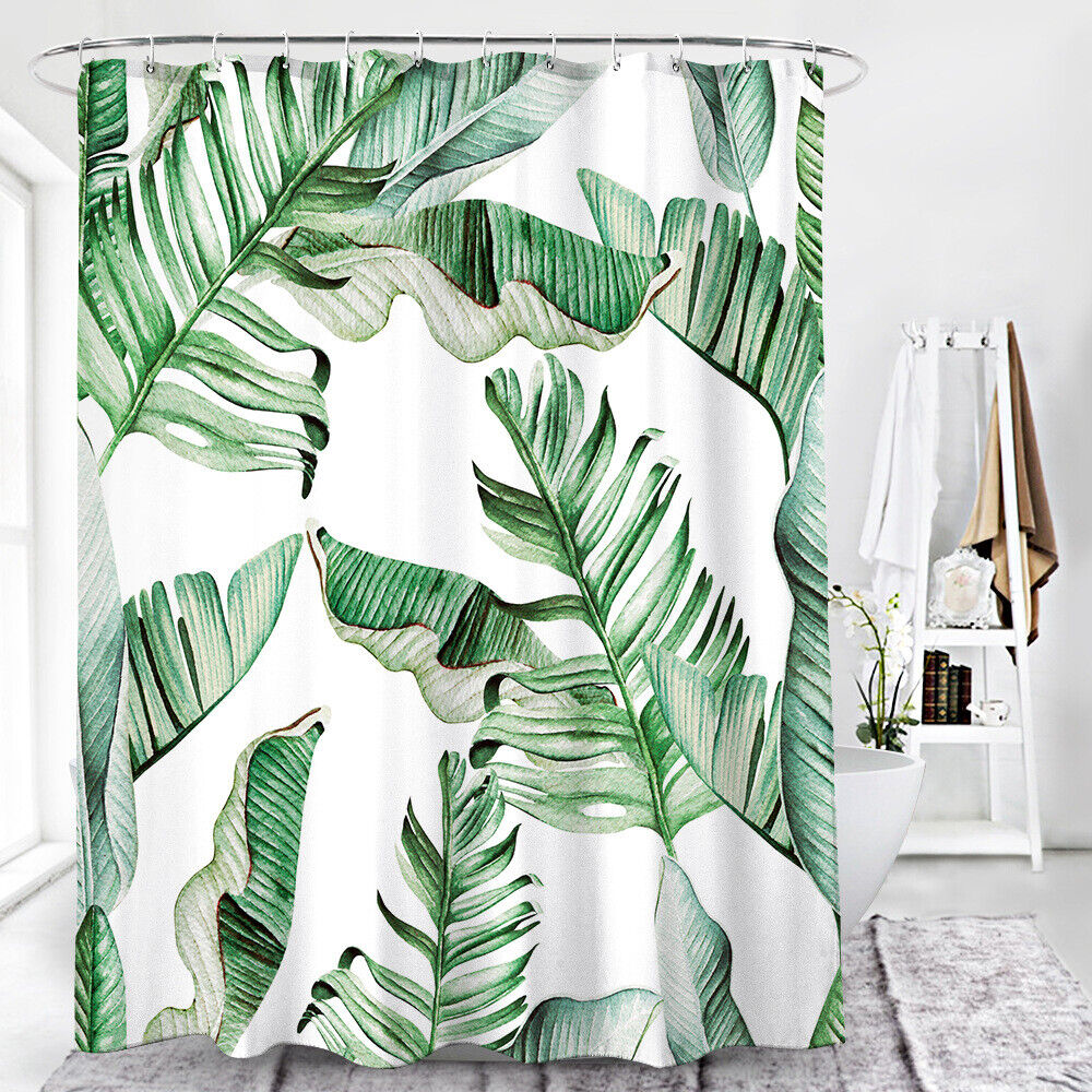 3D Tropical Palm Leaves Leaf Print Bathroom Shower Curtain Home Decor