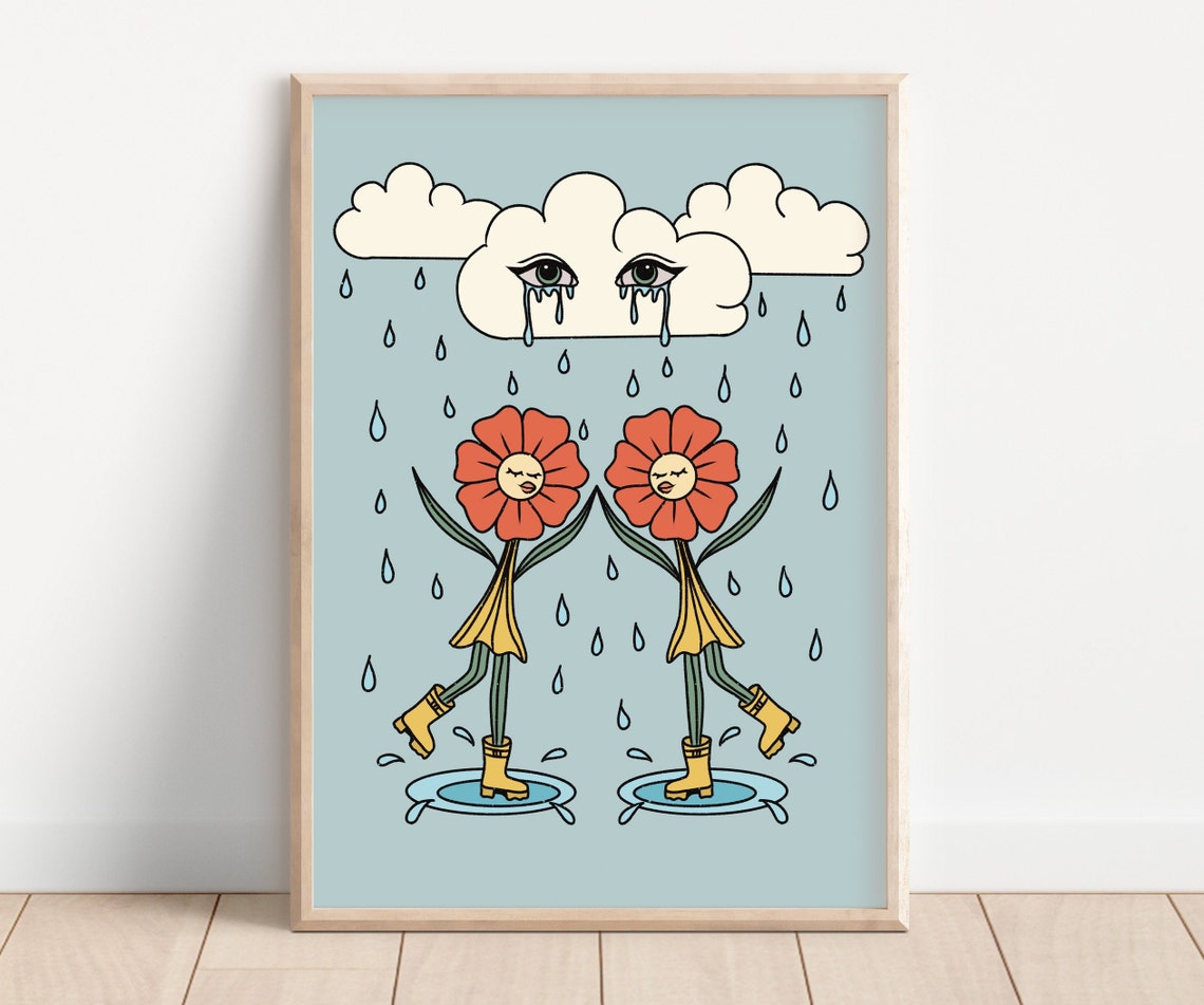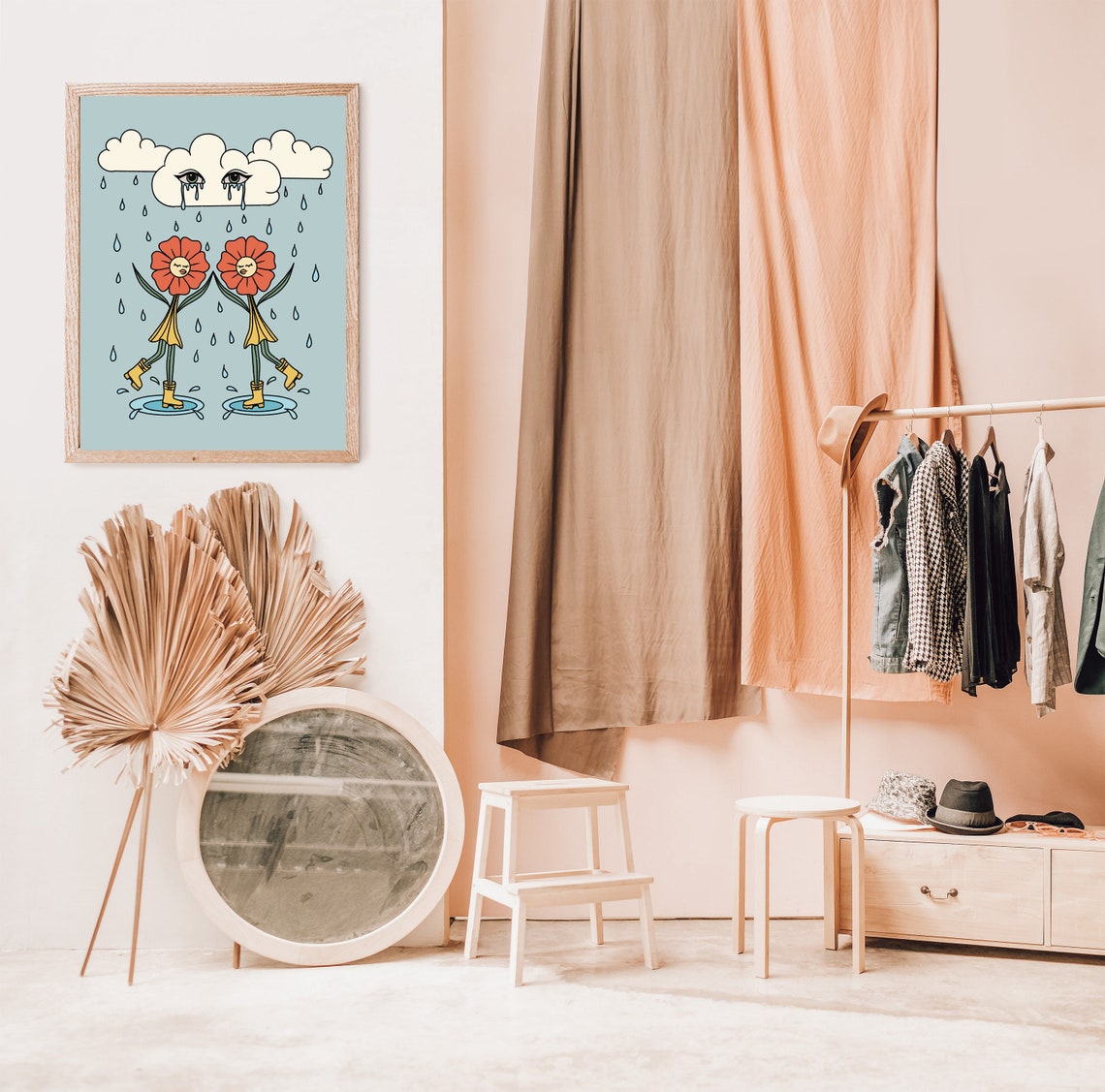 70s Art Boho Style Poster Floral Pattern Wall Art Canvas Print For Psychedelic Room Style