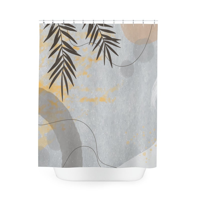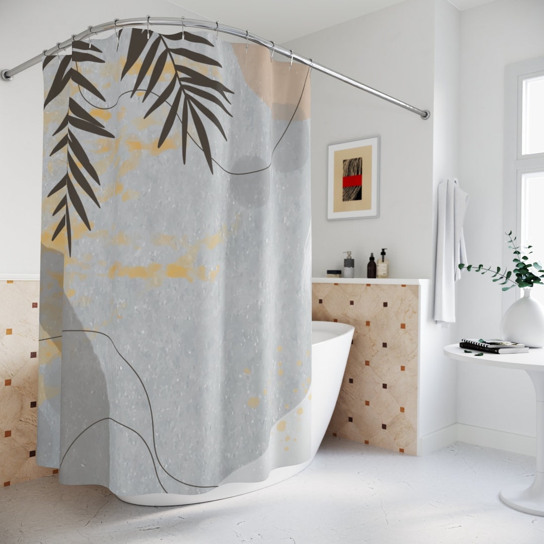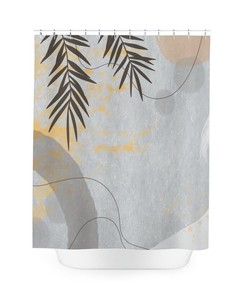 Abstract Art Shower Curtain, Peaceful And Neutral Warm Earth Colors, Lakehouse Leaves Tropical Contemporary Art, Bathroom Curtain