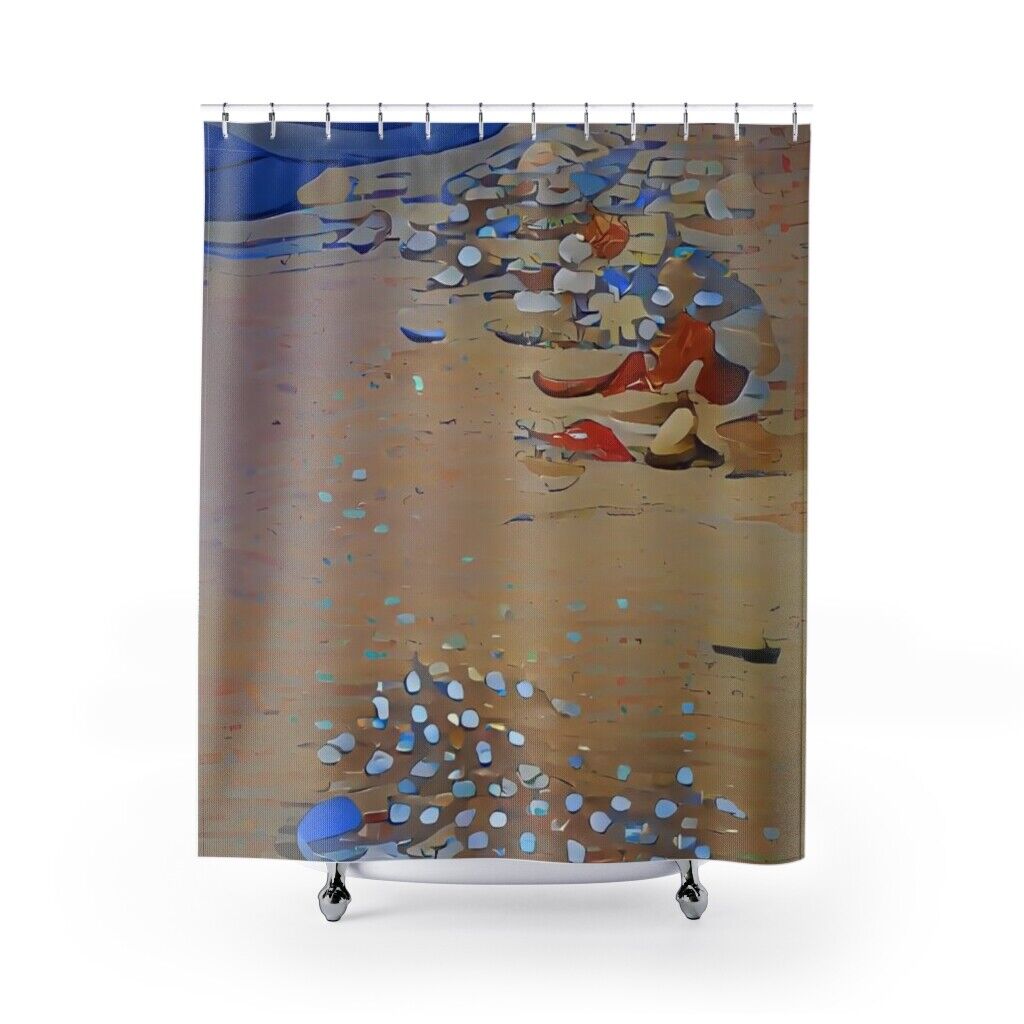 Abstract Ocean Seashell Shower Curtain for Coastal Bathroom Decor