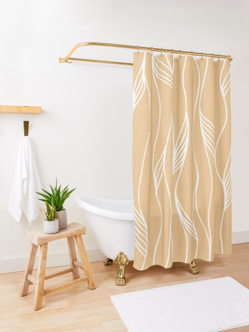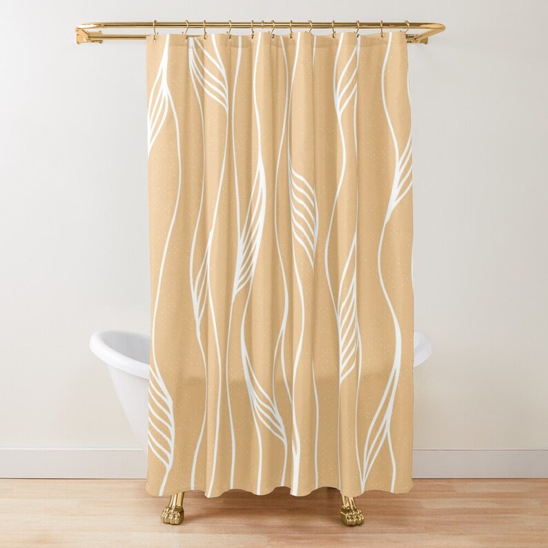 Abstract Shower Curtain, Art Shower Curtain, Minimalist Modern Curtain, Eco-Friendly Material, Waterproof, Orange Decor