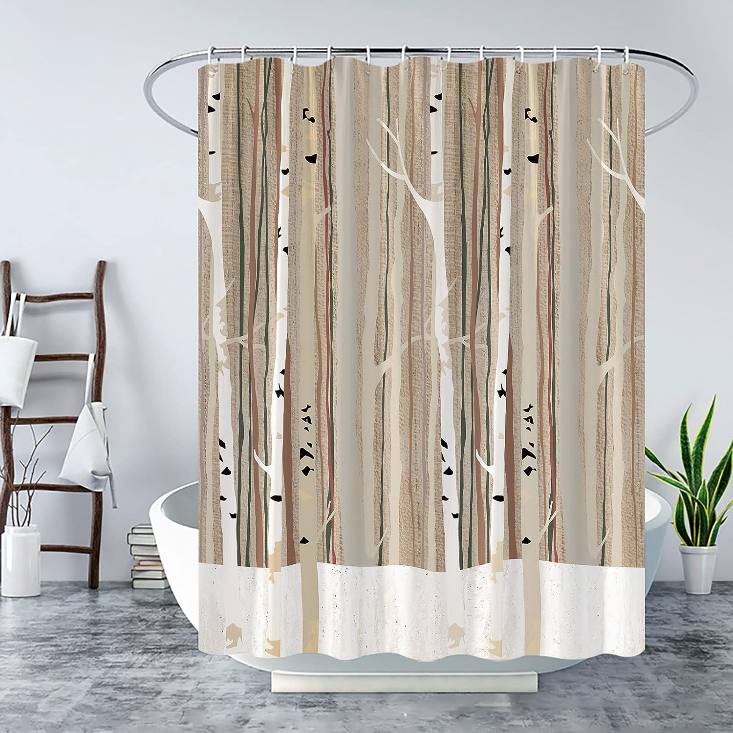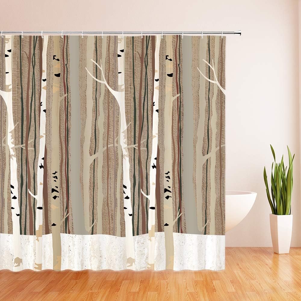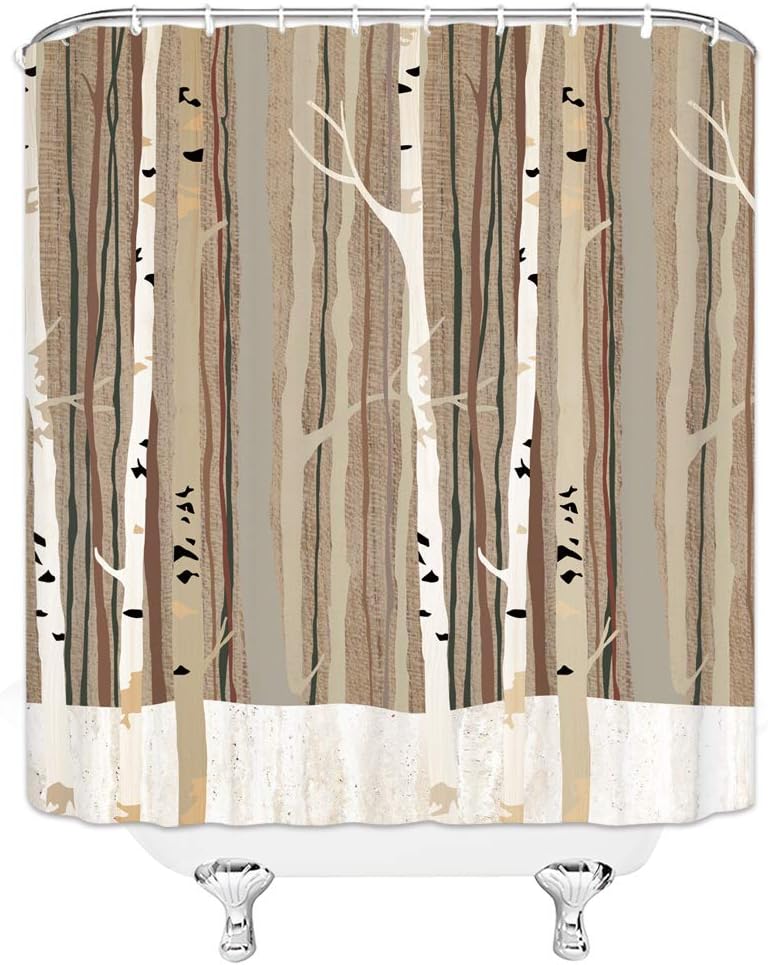 Abstract Tree Trunk Shower Curtain with Birch Tree Design for Bold Bathroom Decor