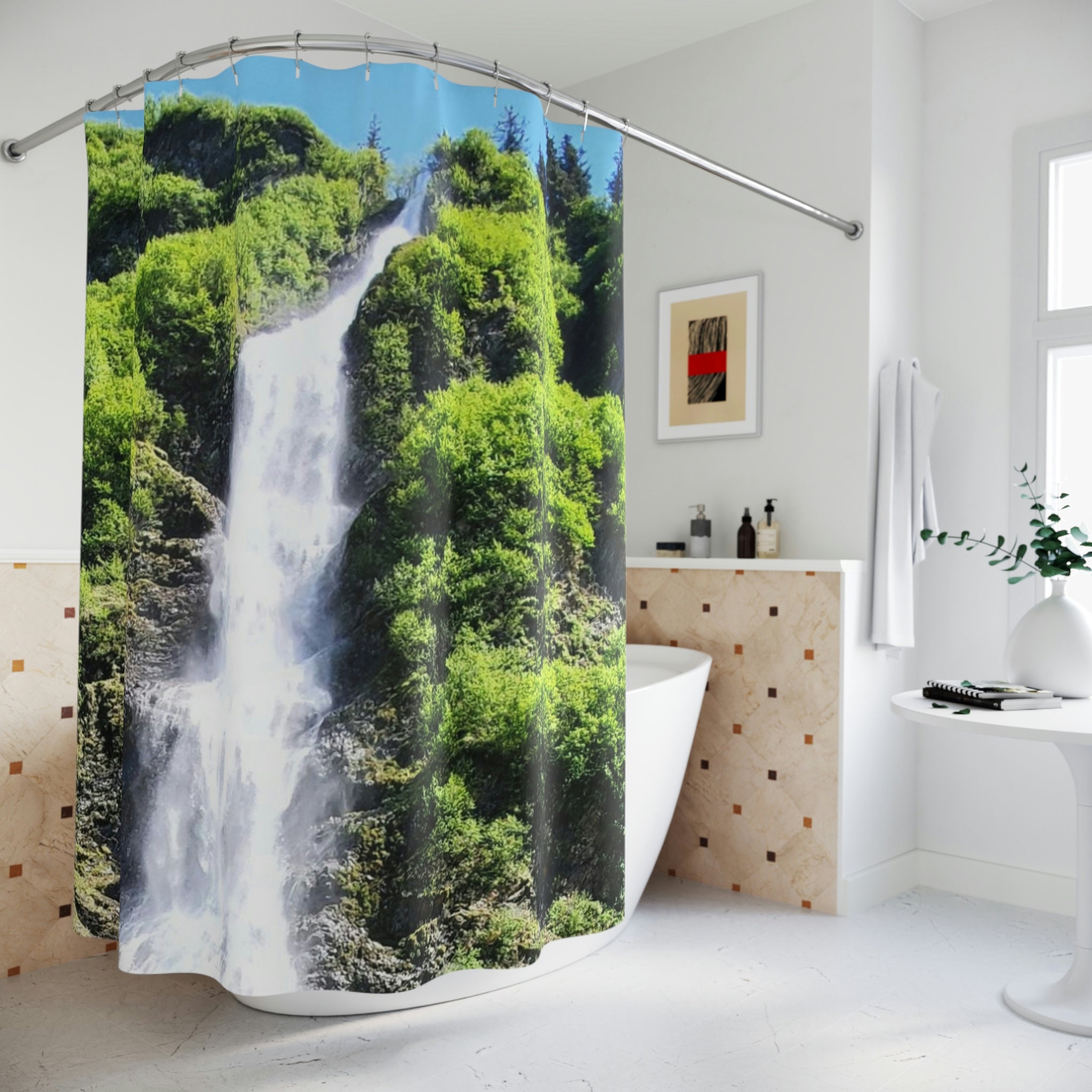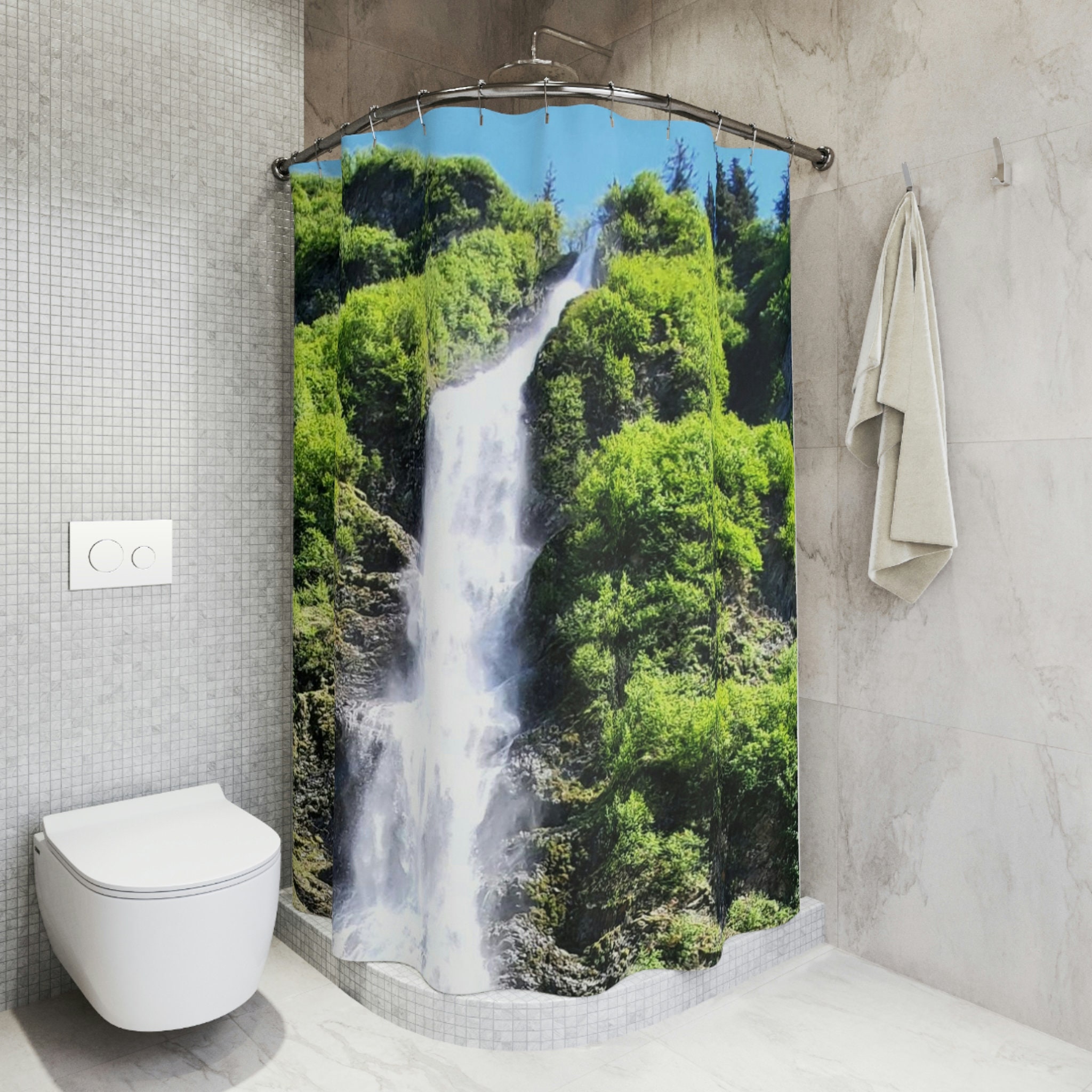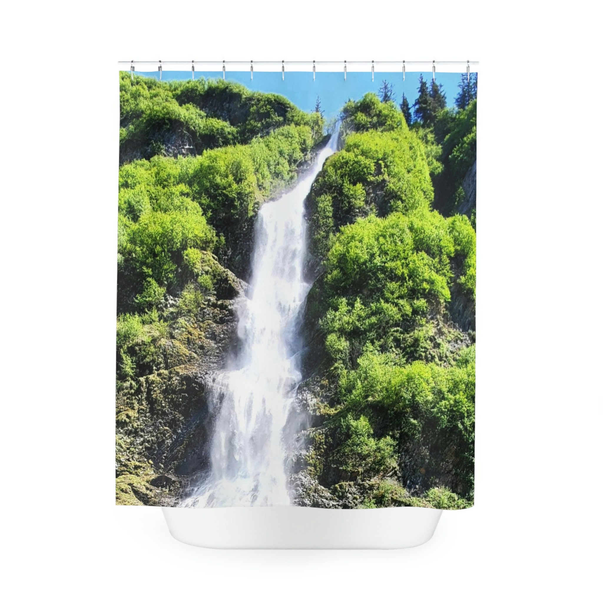 Alaskan Waterfall Shower Curtain – Relaxing Bathroom Decor with Scenic Nature Design