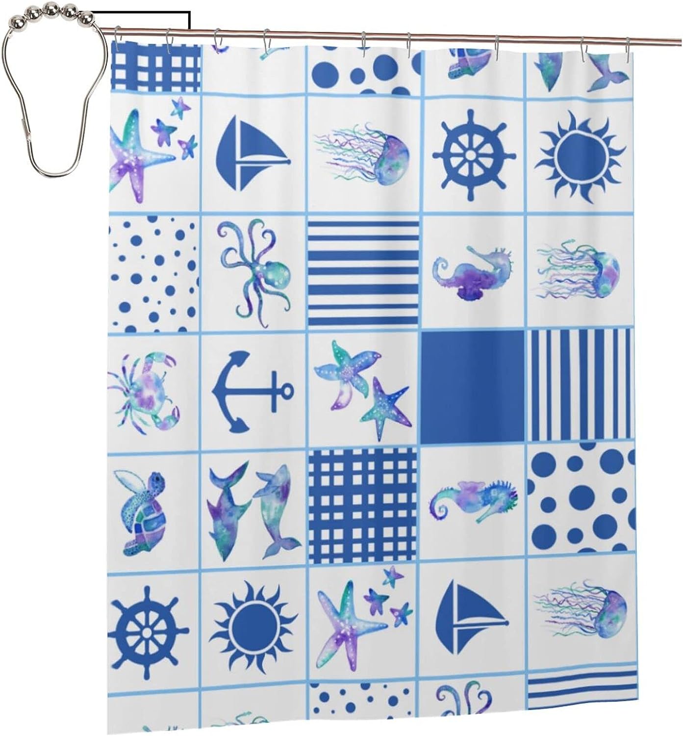 Anchor Seahorse Sea Turtle Starfish Shower Curtain – Heavy Duty Waterproof Bathroom with Grommets and Modern Bath Decor