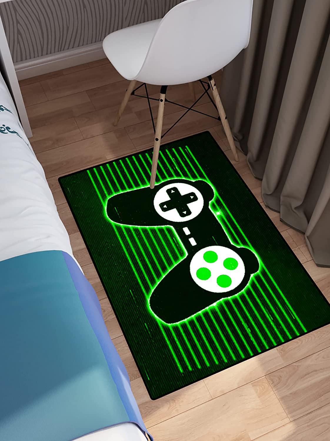 Area Rug – Dining Room Living Room Bedroom Gamer Carpet Decor with Green Laser Line, Super Soft Floor Carpet