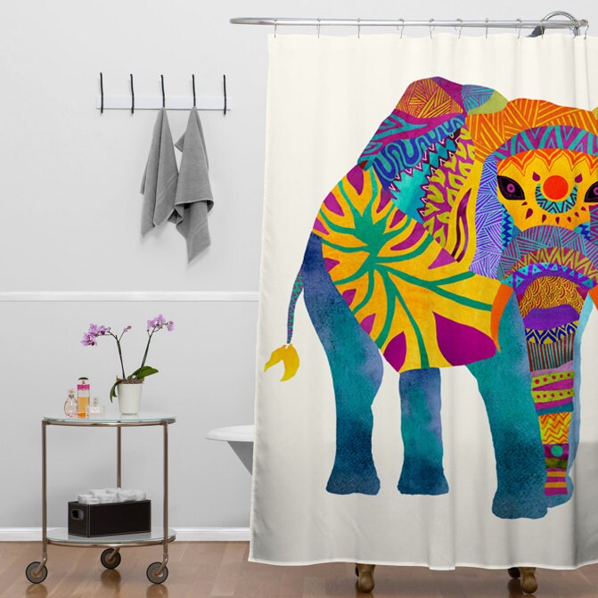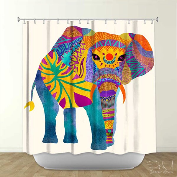 Artistic Shower Curtain for your Home Decoration with Whimsical Elephant Ethnic Multicolor Print