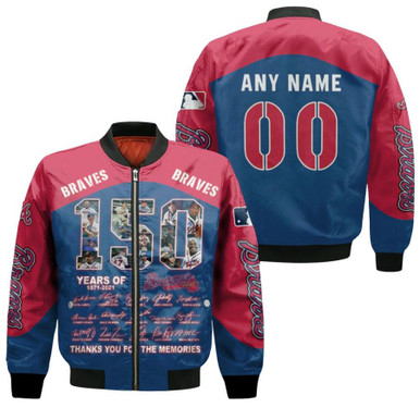 Atlanta Braves 150 Years Of Braves Thank You For The Memories Signatures Gift With Custom Name Number For Braves Fans Bomber Jacket