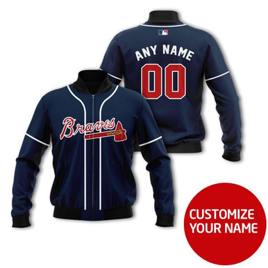 Atlanta Braves Baseball Team Blue Custom Number Name Gift For Braves Fans Bomber Jacket 900011348045