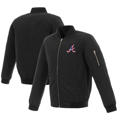 Atlanta Braves JH Design 2019 Stars and Stripes Bomber Jacket with Embroidered Logo – Black