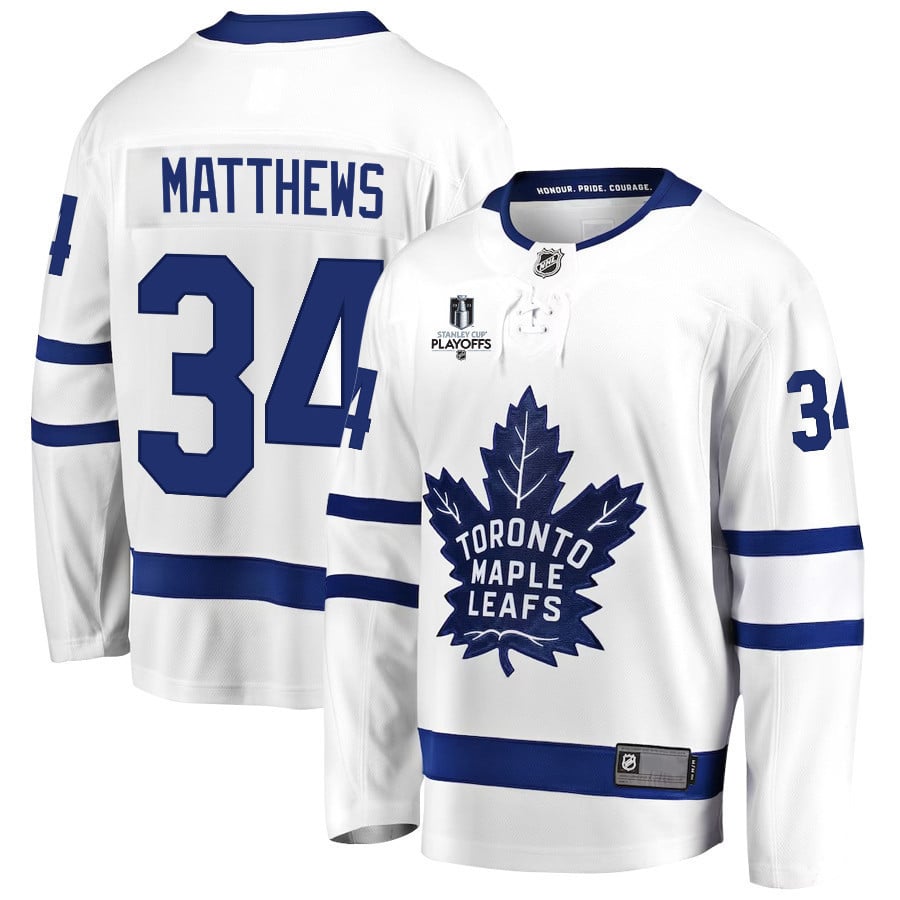 Auston Matthews 34 Toronto Maple Leafs Stanley Cup 2023 Playoffs Patch Away Breakaway Men Jersey – White
