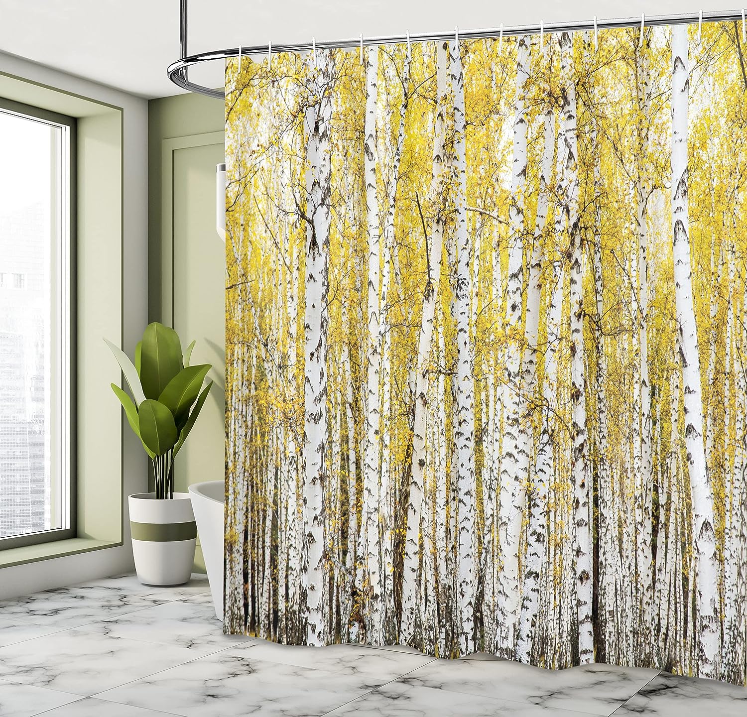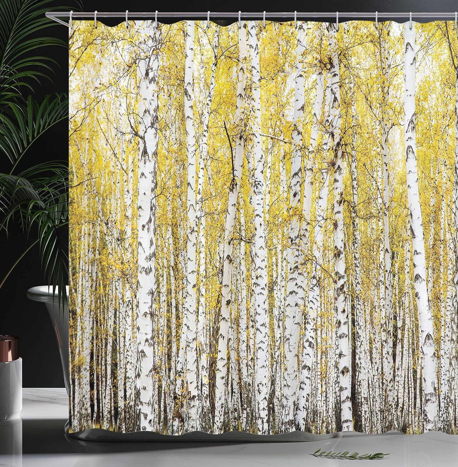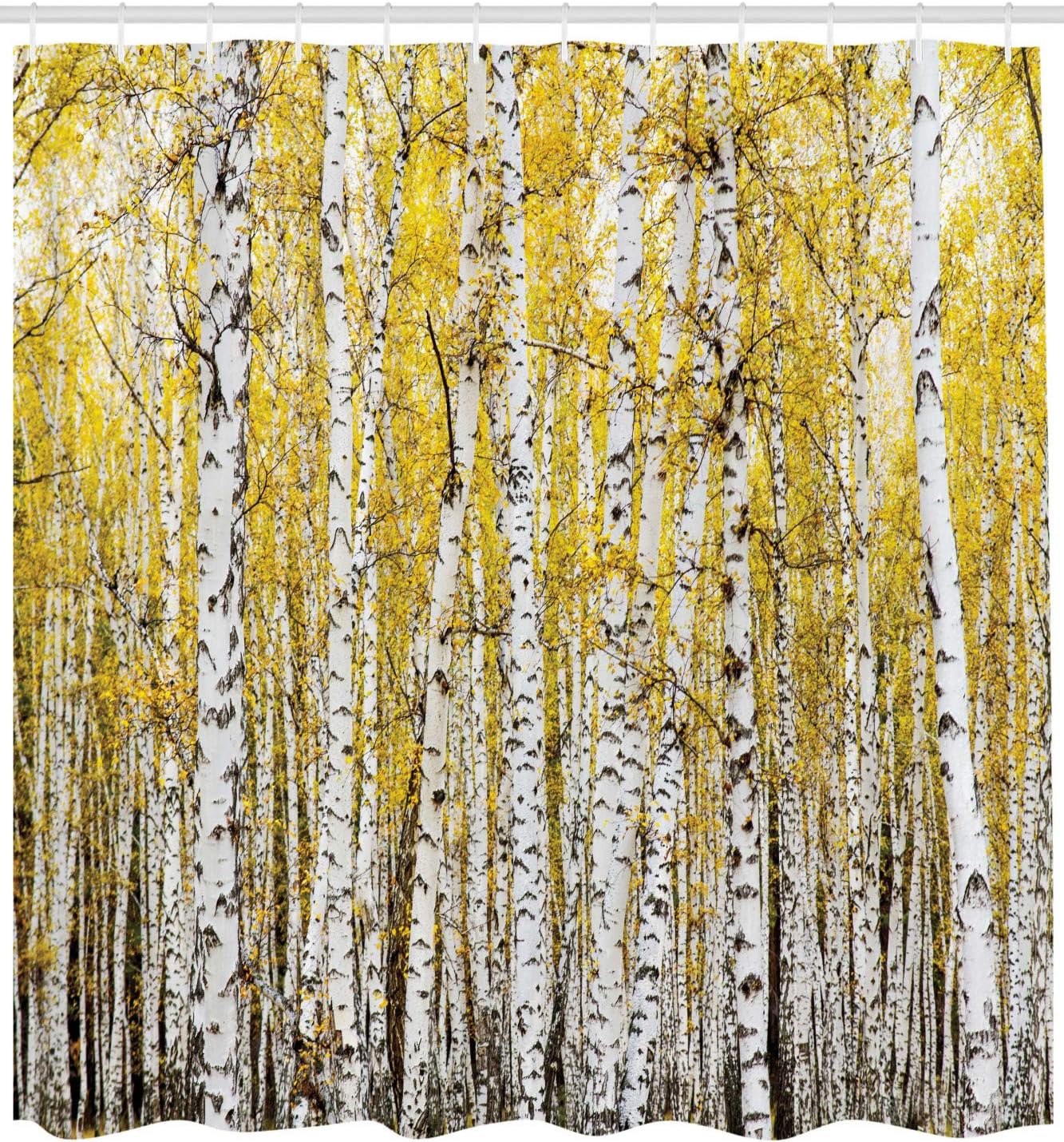 Autumn Birch Forest Shower Curtain with Golden Leaves for Bathroom Decor