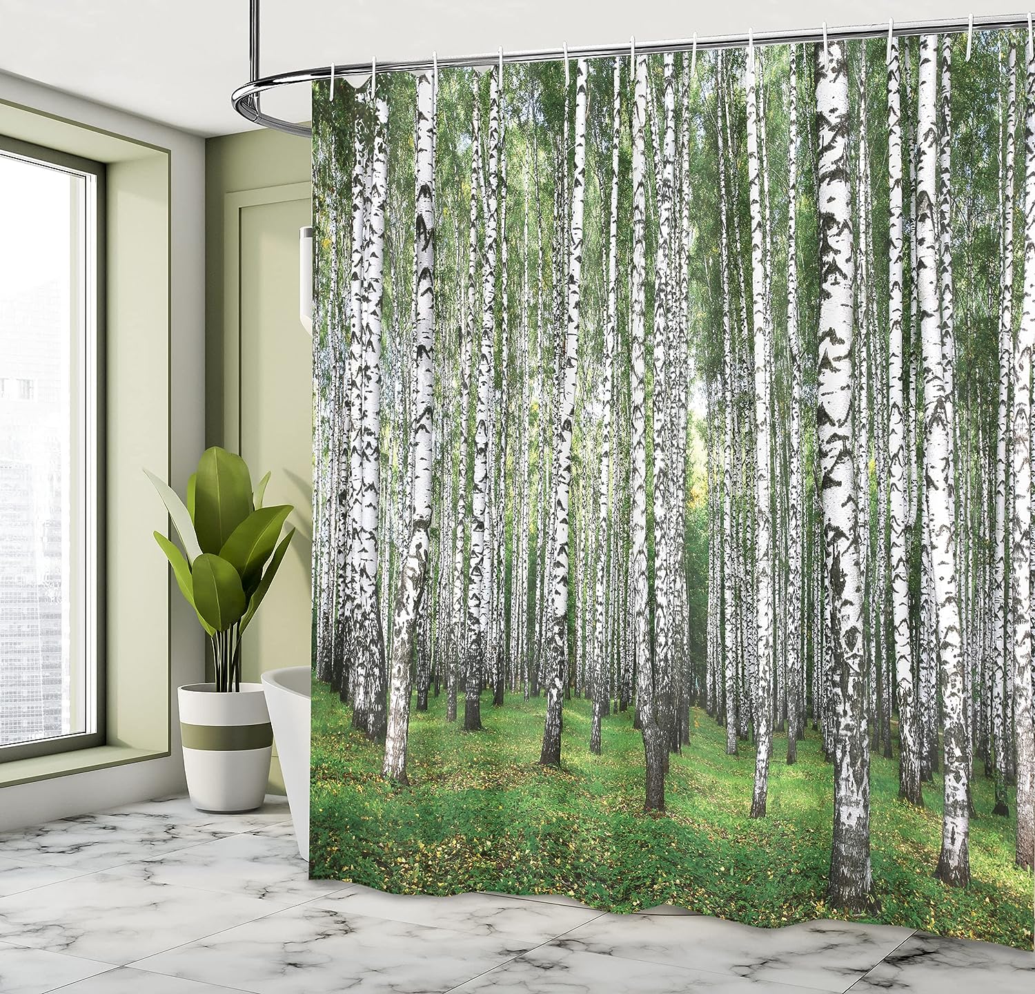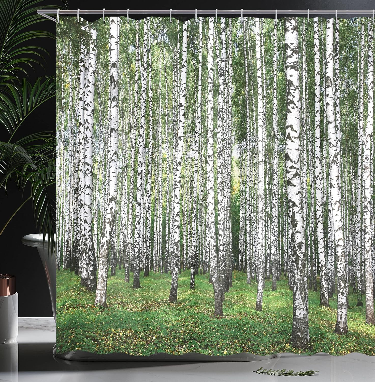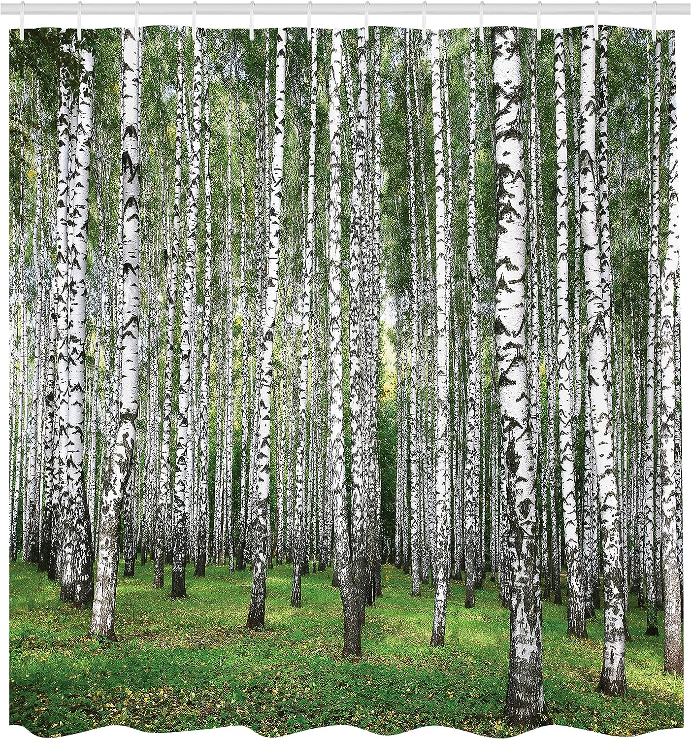 Autumn Birch Shower Curtain, Forest Trees View Landscape Picture Cloth Fabric Bathroom Decor, Home Decor Black/White