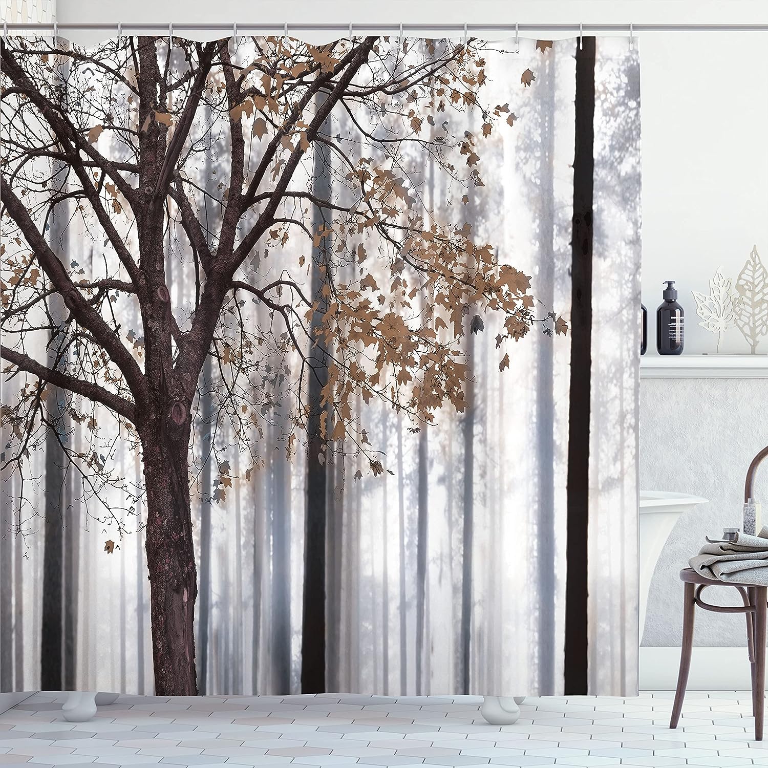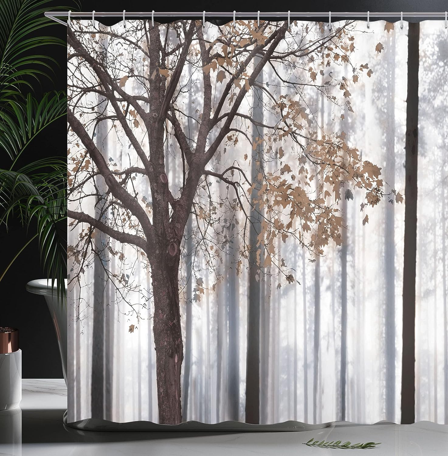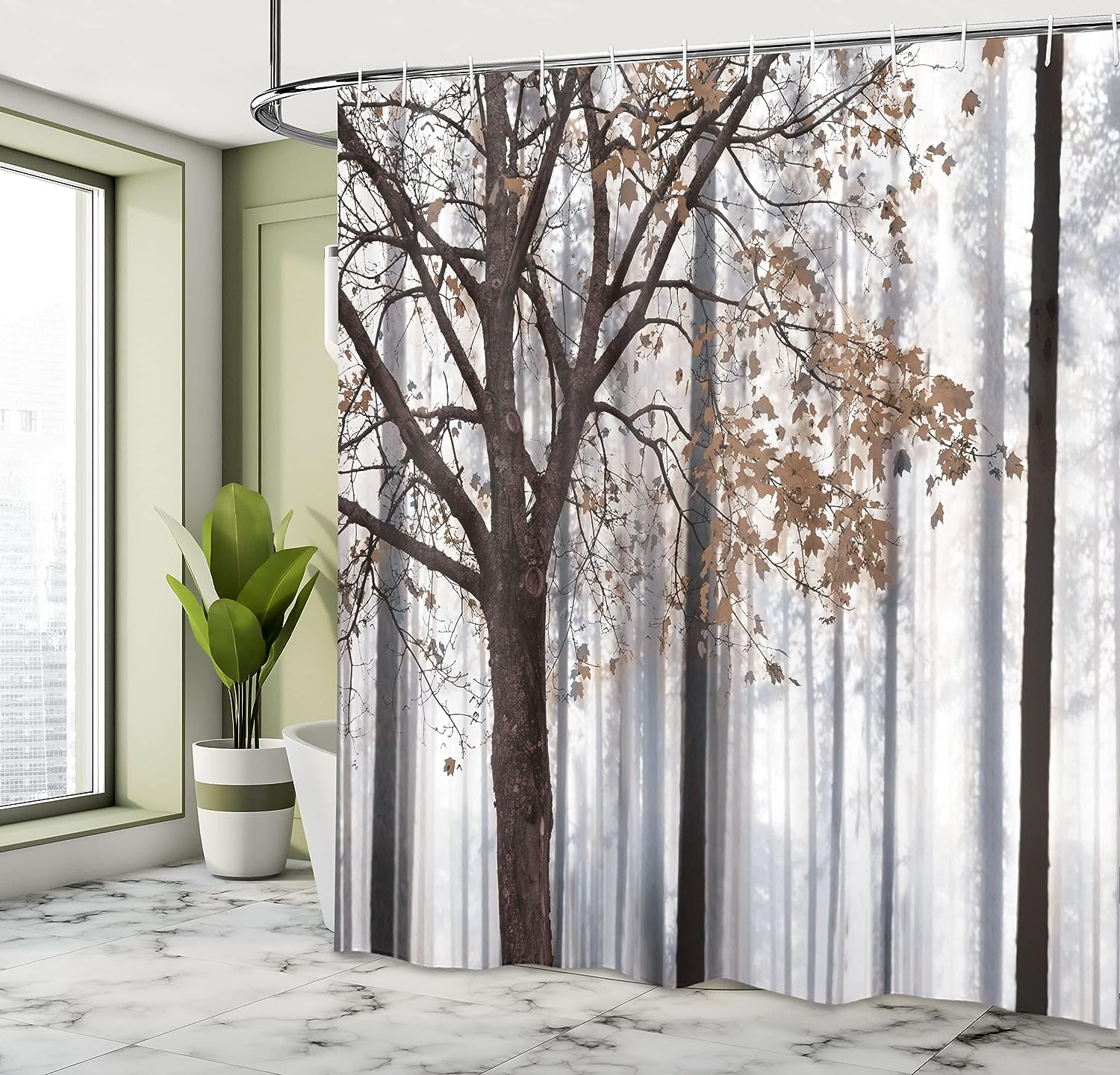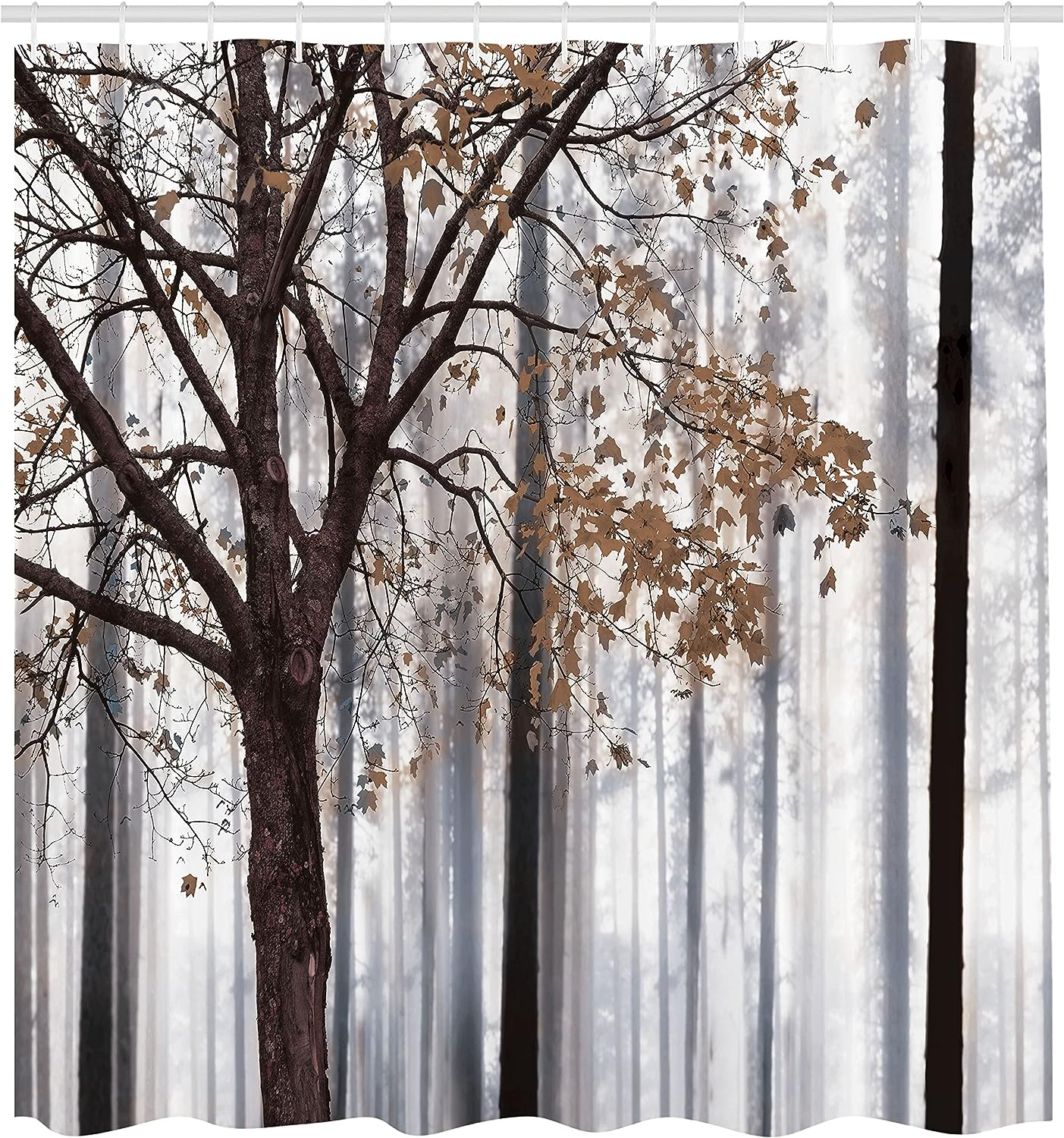 Autumn Farm House Shower Curtain, Rustic Bathroom Decor Cloth Set in Warm Taupe