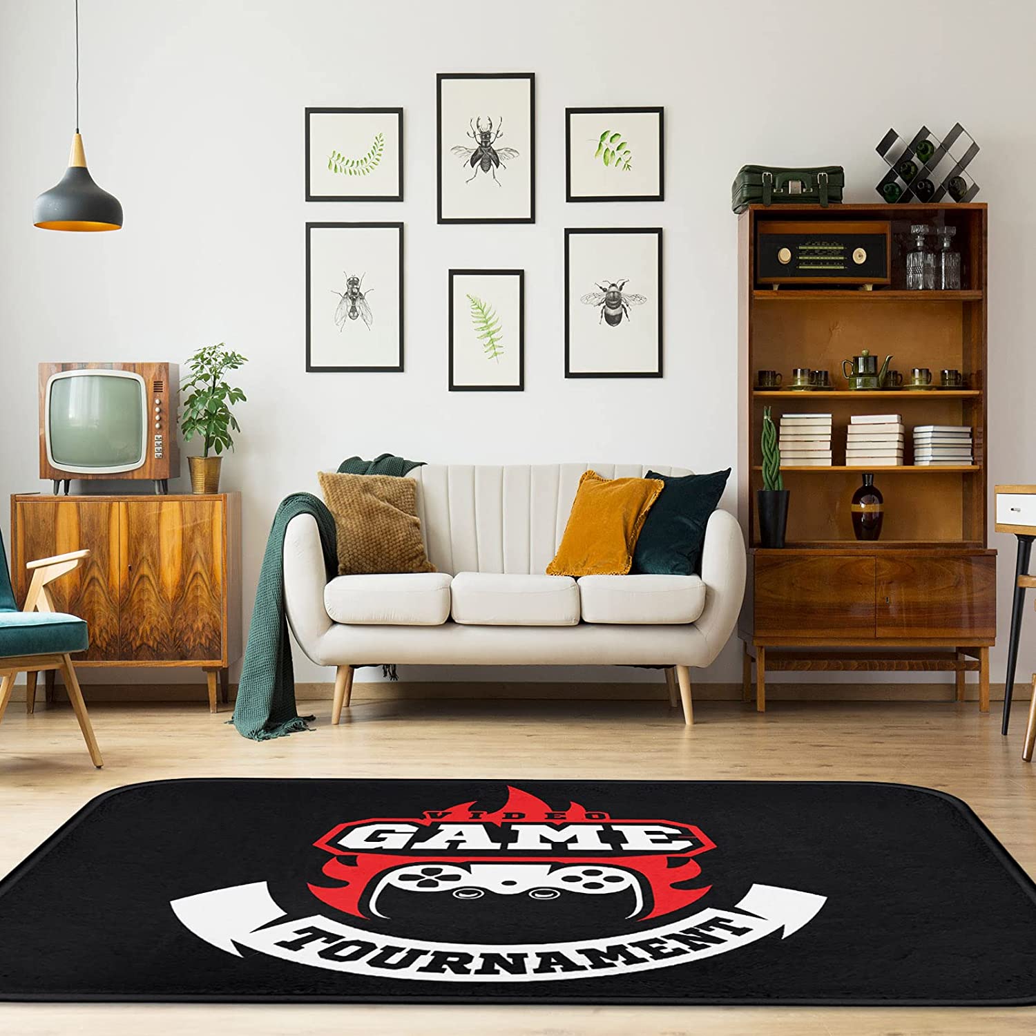 Bayson Area Rug Game Flame Carpet with Game Console Red and Black Teen Boy Play Kids Room Rug Home Decor Floor Rug