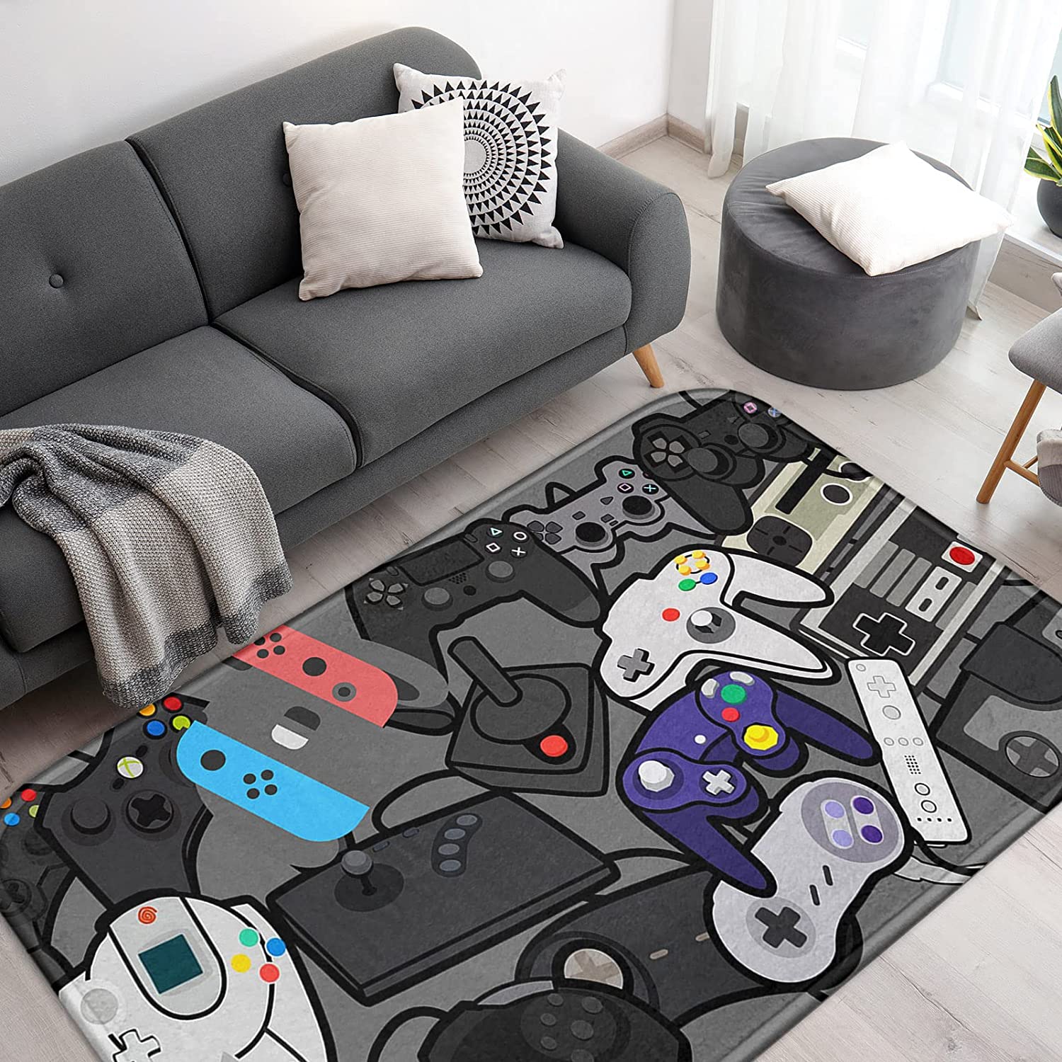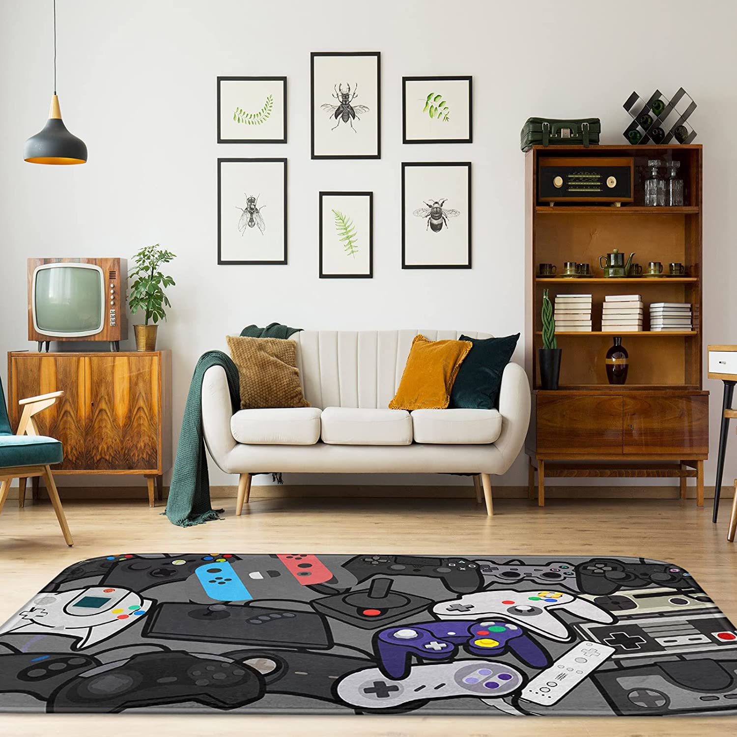 Bayson Area Rug Game Rug with Game Console and Knife Grey and Black Teen Boy Play Home Decor Floor Rug