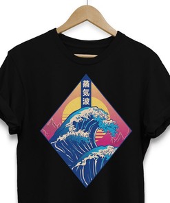 Big Wave T-Shirt – Japan Streetwear Synthwave Clothing – Kanji Apparel Wave Design