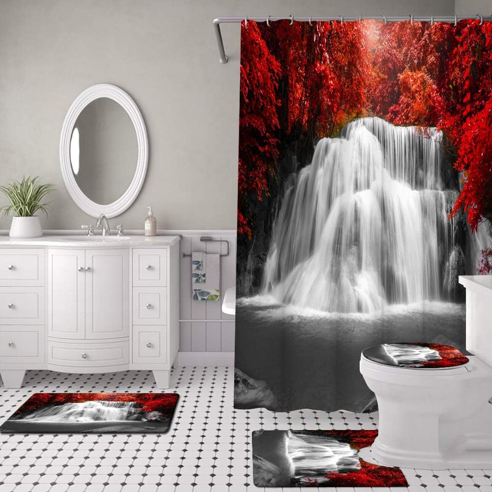 Black and Red Waterfall Shower Curtain for a Dramatic Bathroom Decor