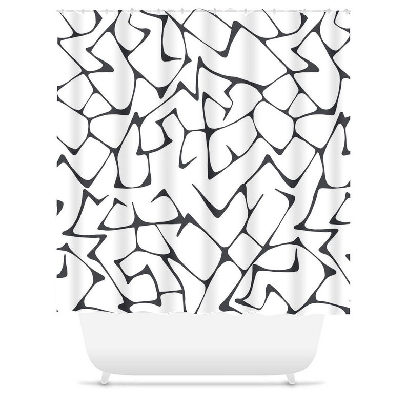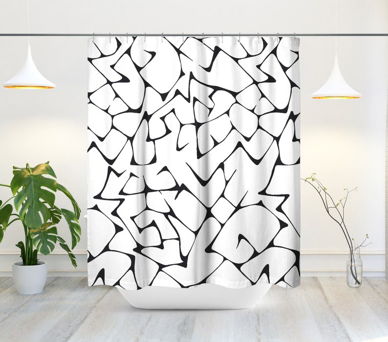Black And White Mid-Century Modern Shower Curtain, Abstract Bath Curtain, Contemporary Curtain, Modern Bath Decor