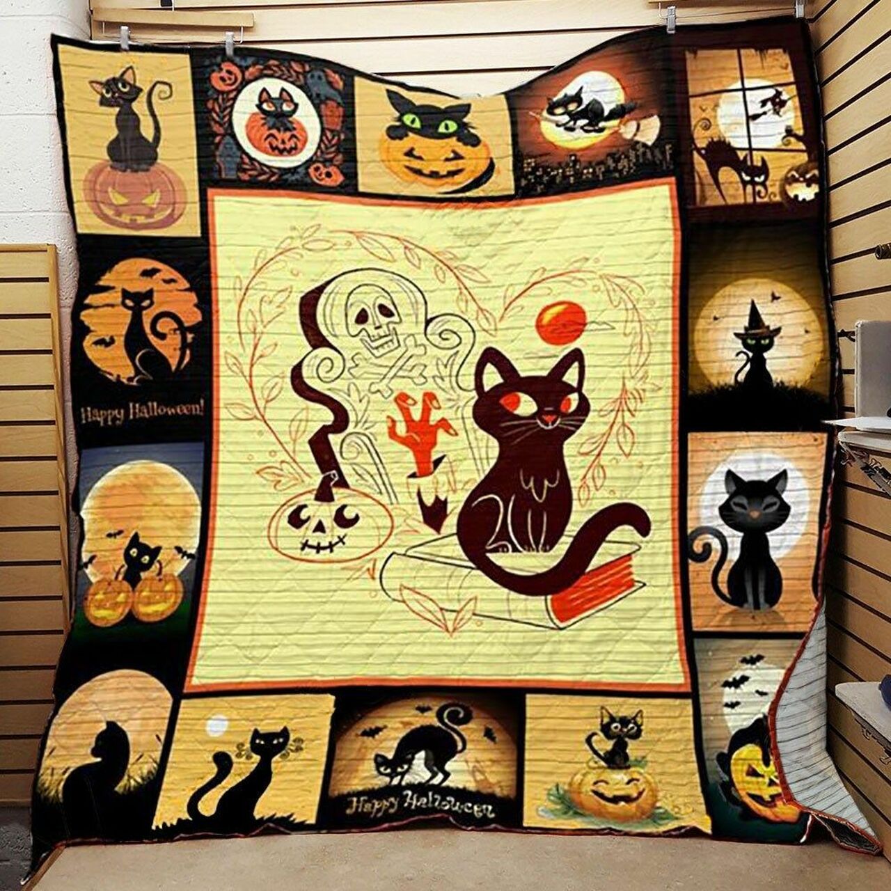 Black Cat Halloween Quilt Bedding Set Personalized with Name, Suitable for Home Decor and Picnic