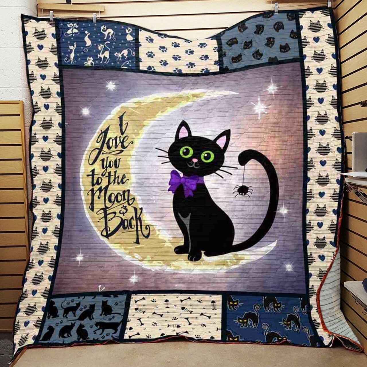 Black Cat I Love You To The Moon And Back Quilt Bedding Set Blanket