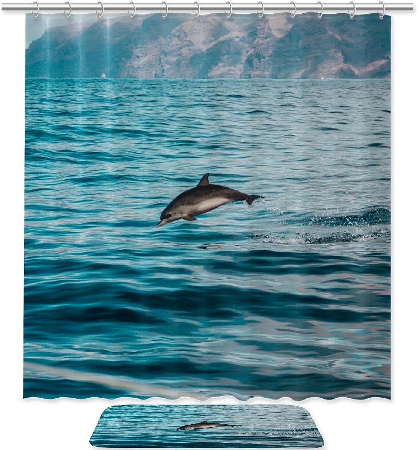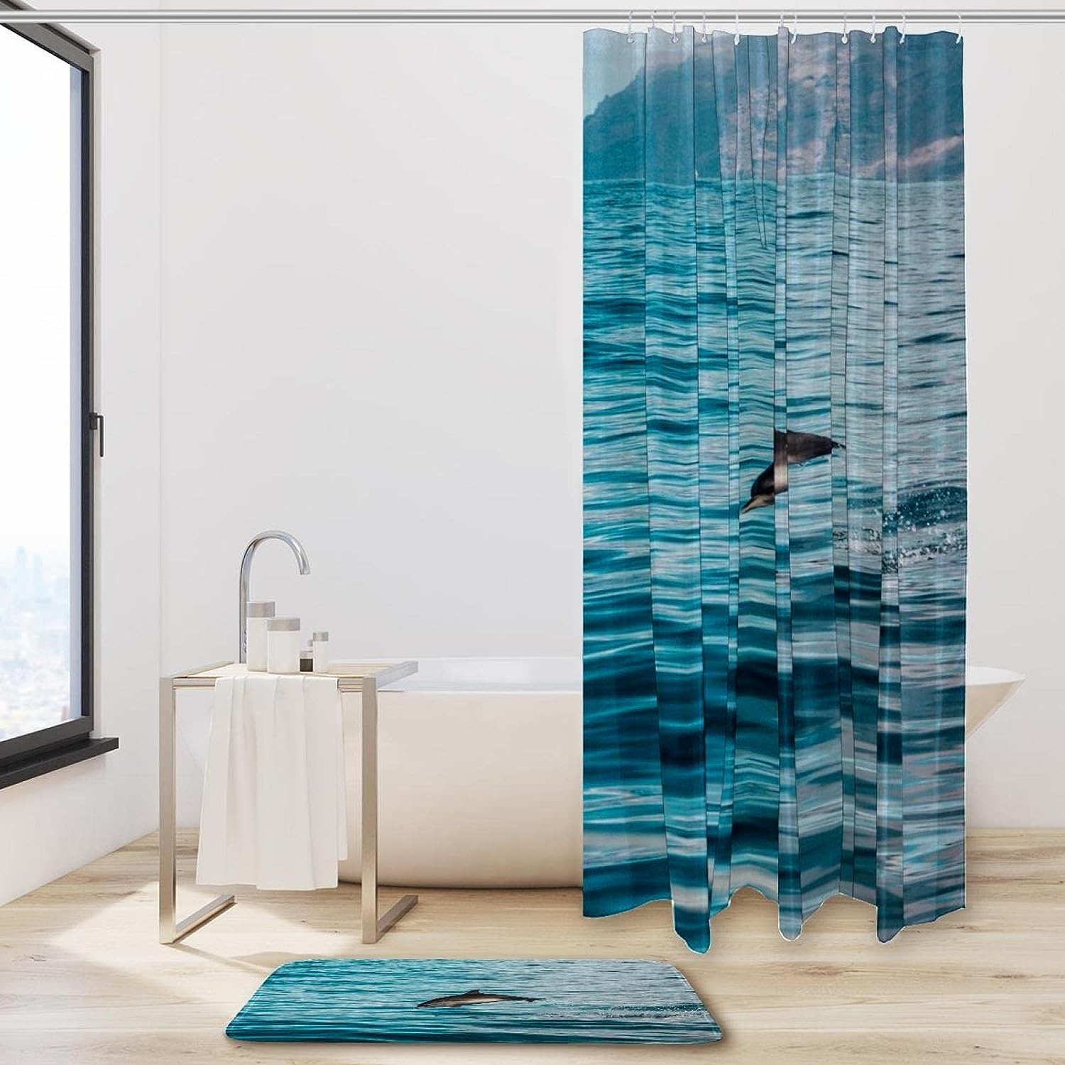 Black Dolphin Tubumping Shower Curtain in Waterproof Fabric for Bathroom Decor