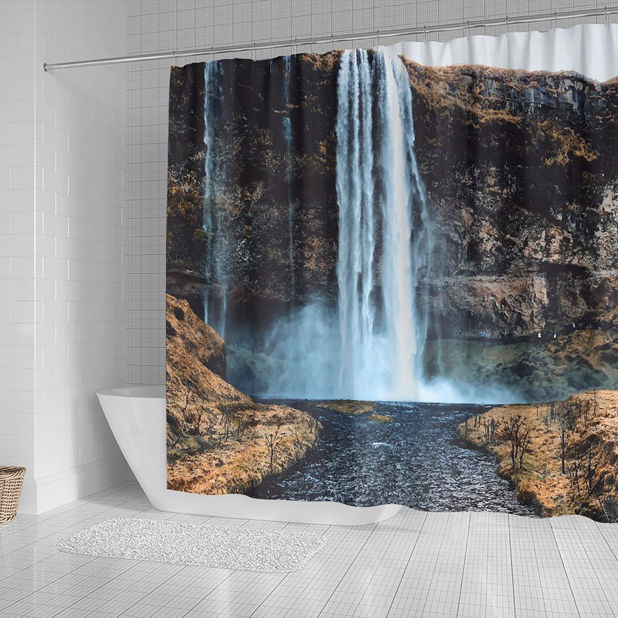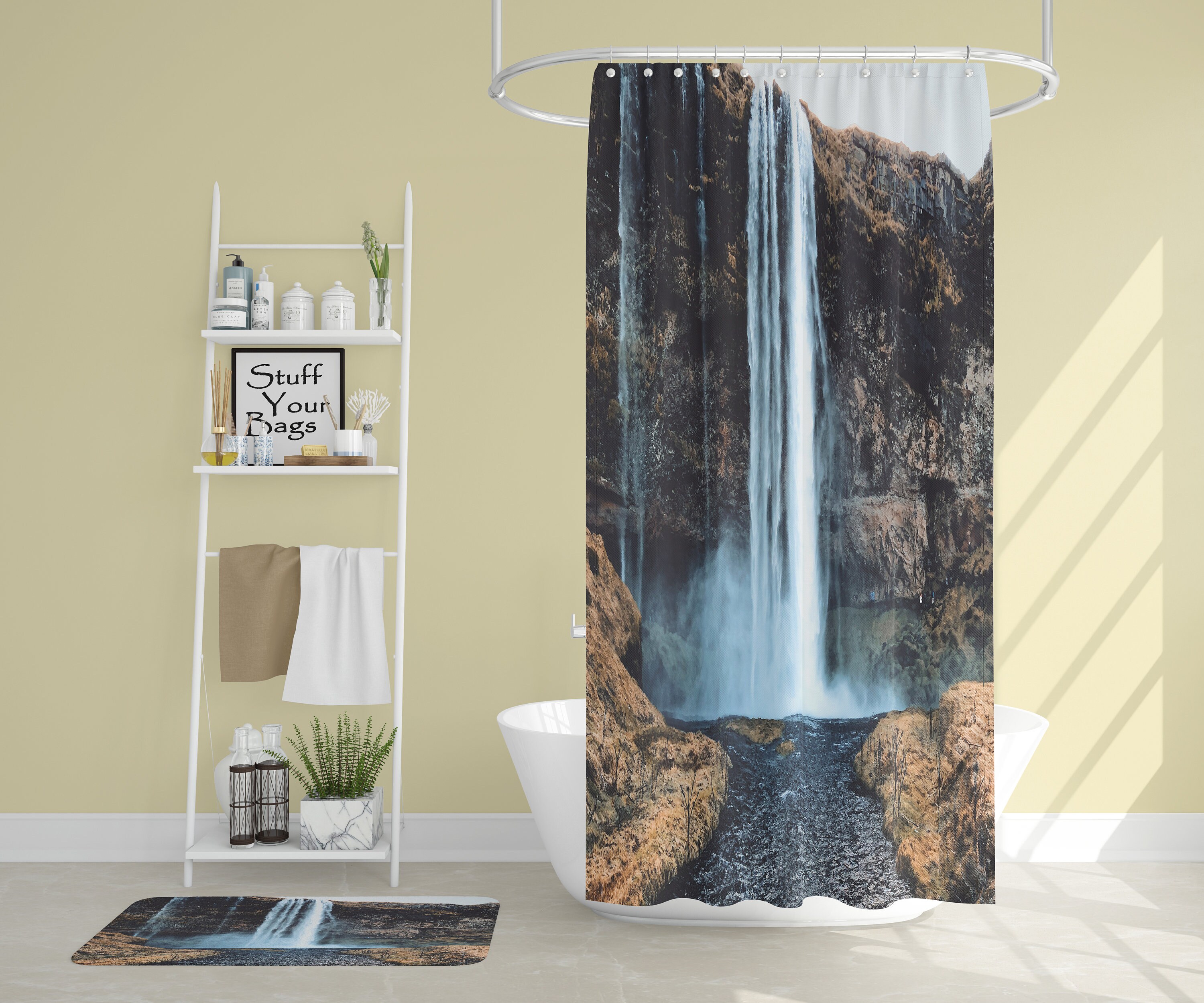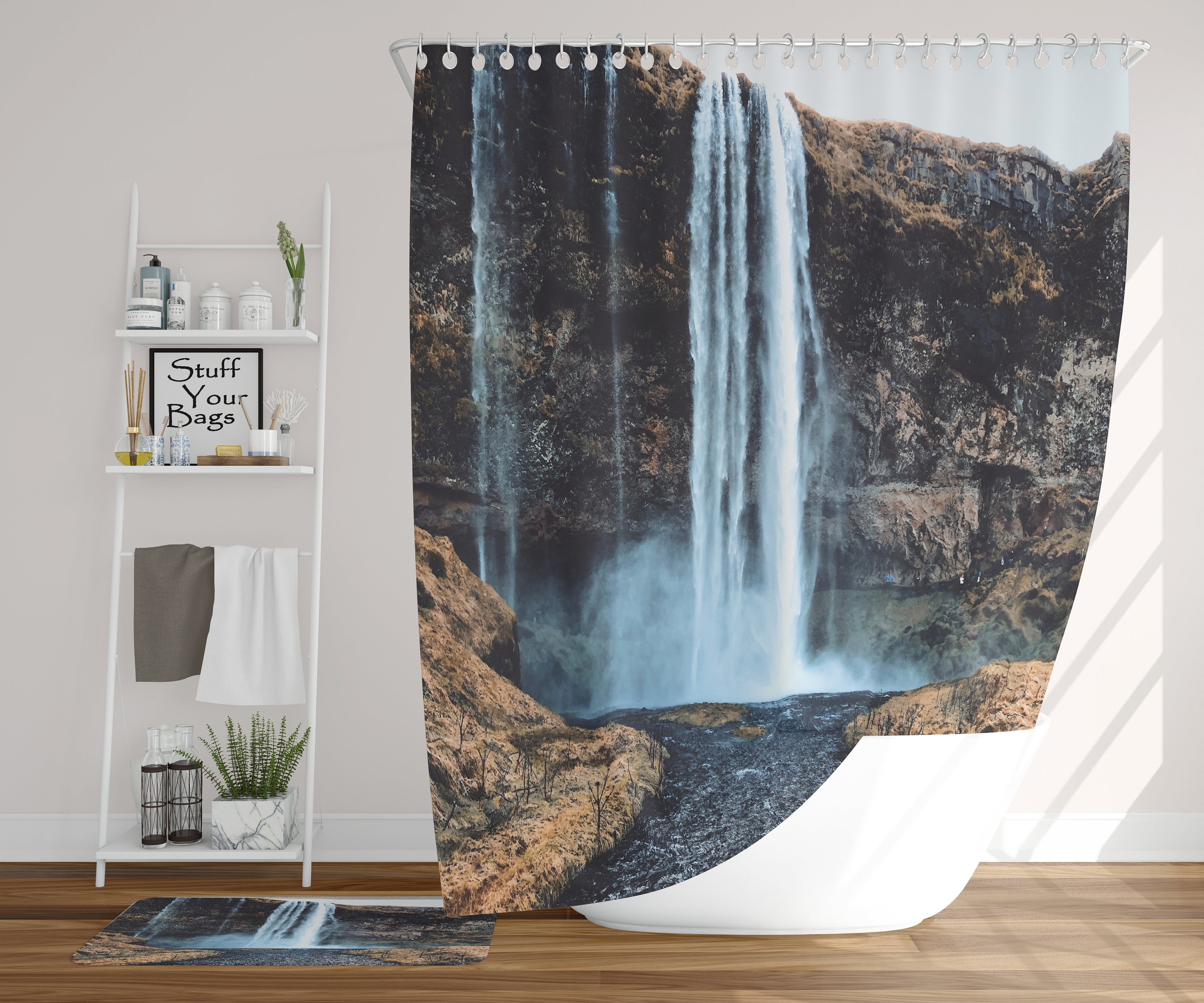 Black Rock Falls Nature Shower Curtain for Rustic and Serene Bathroom Decor