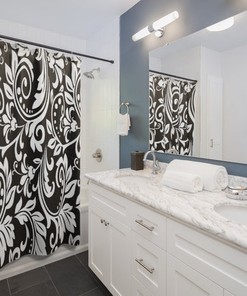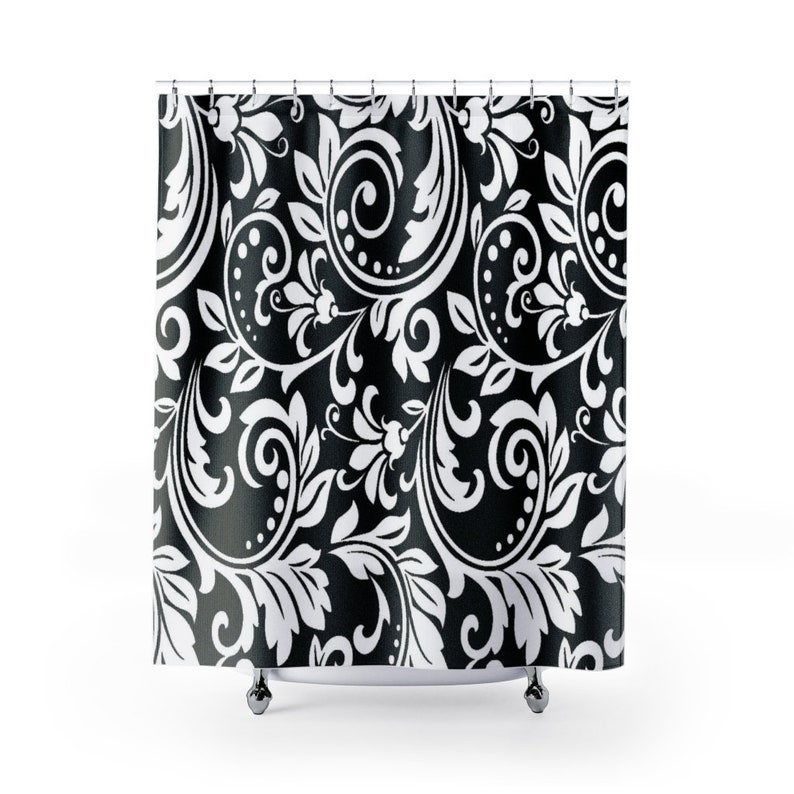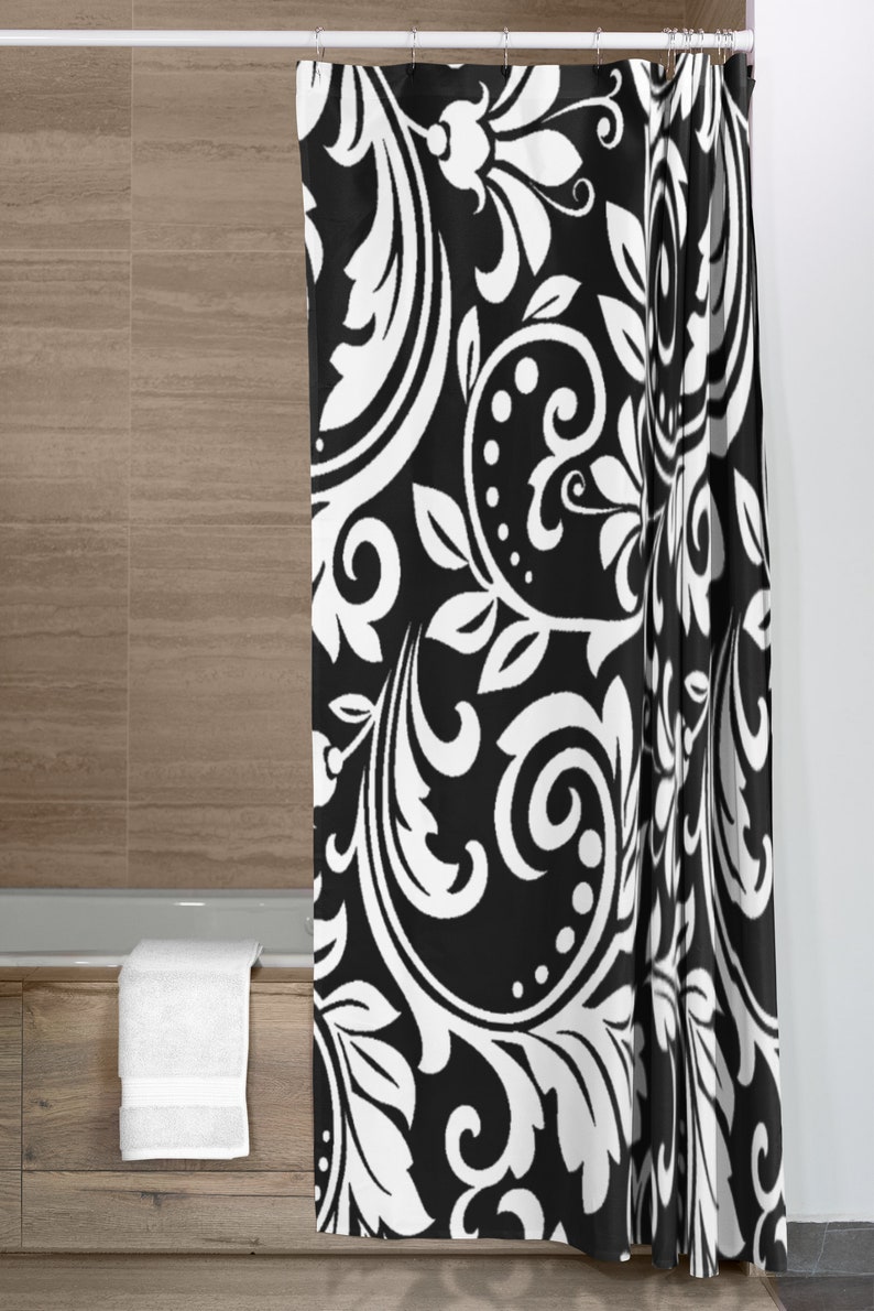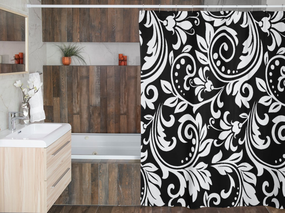 Black White Damask Shower Curtain, Vintage Style Shower Curtain, New Home Housewarming Gift, New Apartment Gift