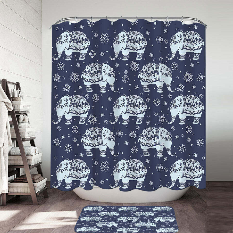 Blue Indigo Boho Shower Curtain – Watercolor Floral Bathroom Decor