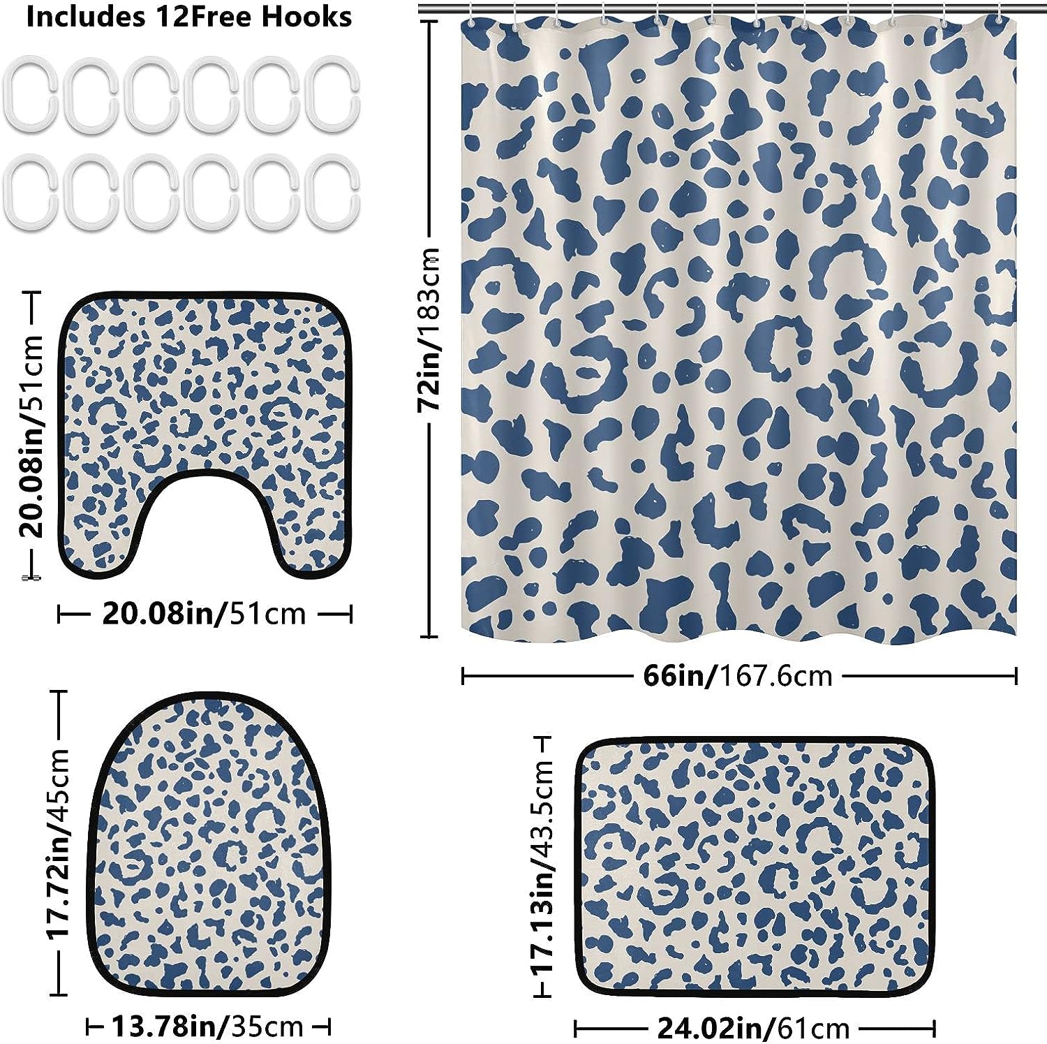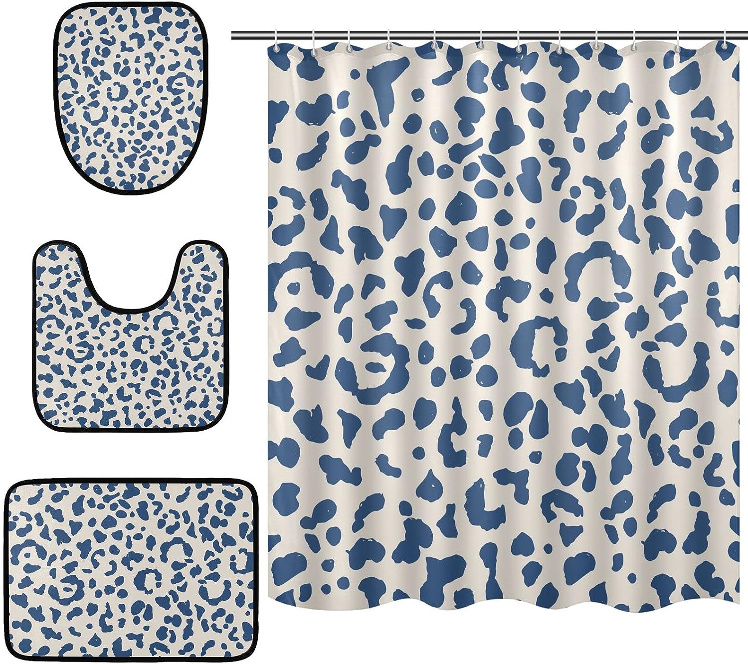 Blue Leopard Spot Shower Curtain with Matching Mat and Contour – Unique Bathroom Decor