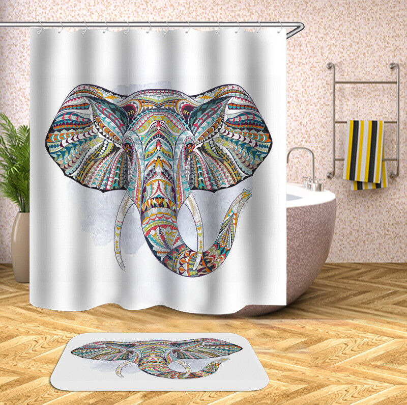 Bohemian Elephant Animal Printed Shower Curtain Waterproof for Bathtub