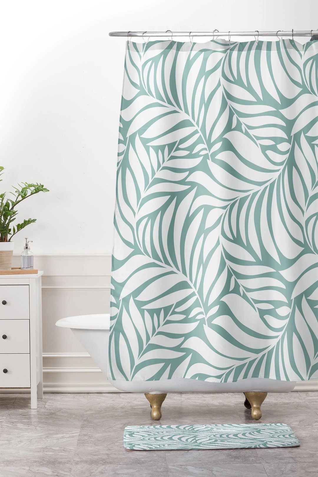 Bohemian Shower Curtain, Bath Curtain, Sea Green Shower Curtain, Boho Style, Bathroom Decor, Botanical Shower Curtain, Aqua