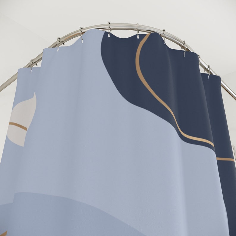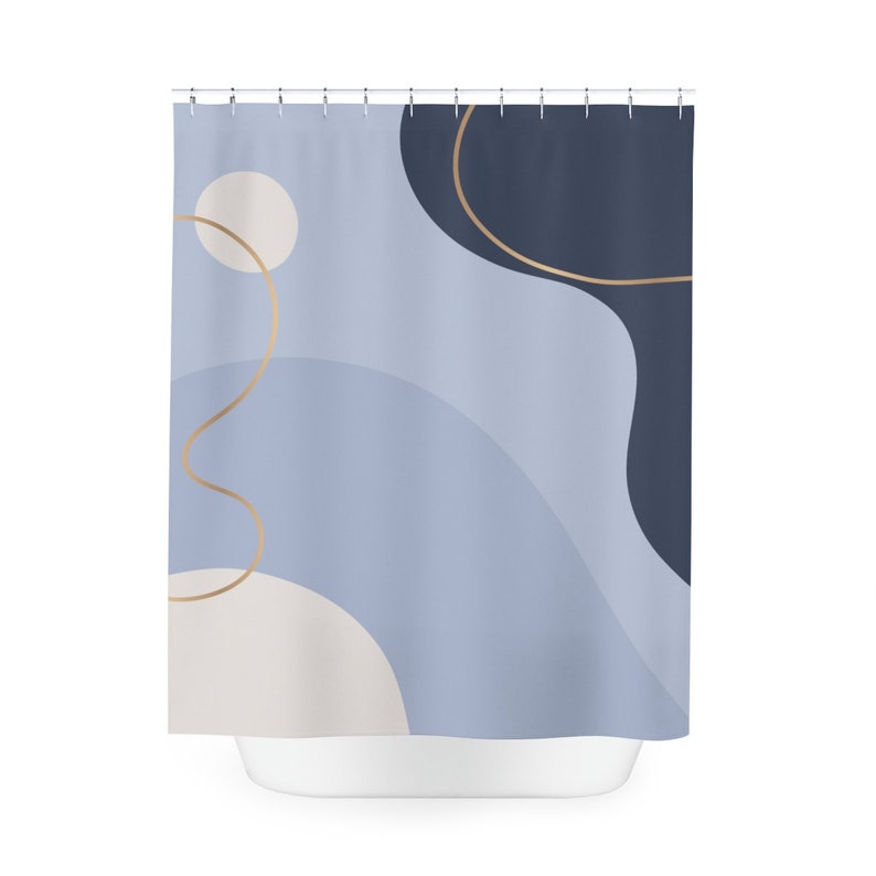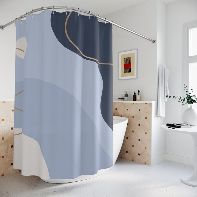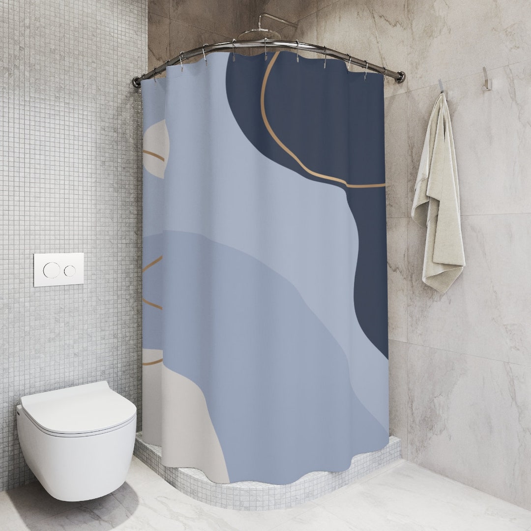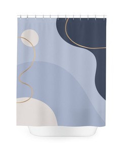 Boho Abstract Pattern Shower Curtain, Modern Blue Gold, Contemporary Art, Bathroom Curtain, Decoration, Minimalist Mint Home Art