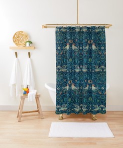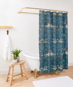 Boho Birds Shower Curtain Eco-Friendly Waterproof Art Nouveau Birds Curtain Strawberries Curtain Bohemian Decor
