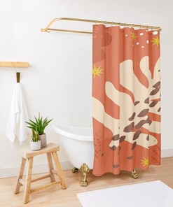 Boho Botanic Abstract Patterns Trendy Shower Curtain, Eco-Friendly Waterproof Abstract Decor