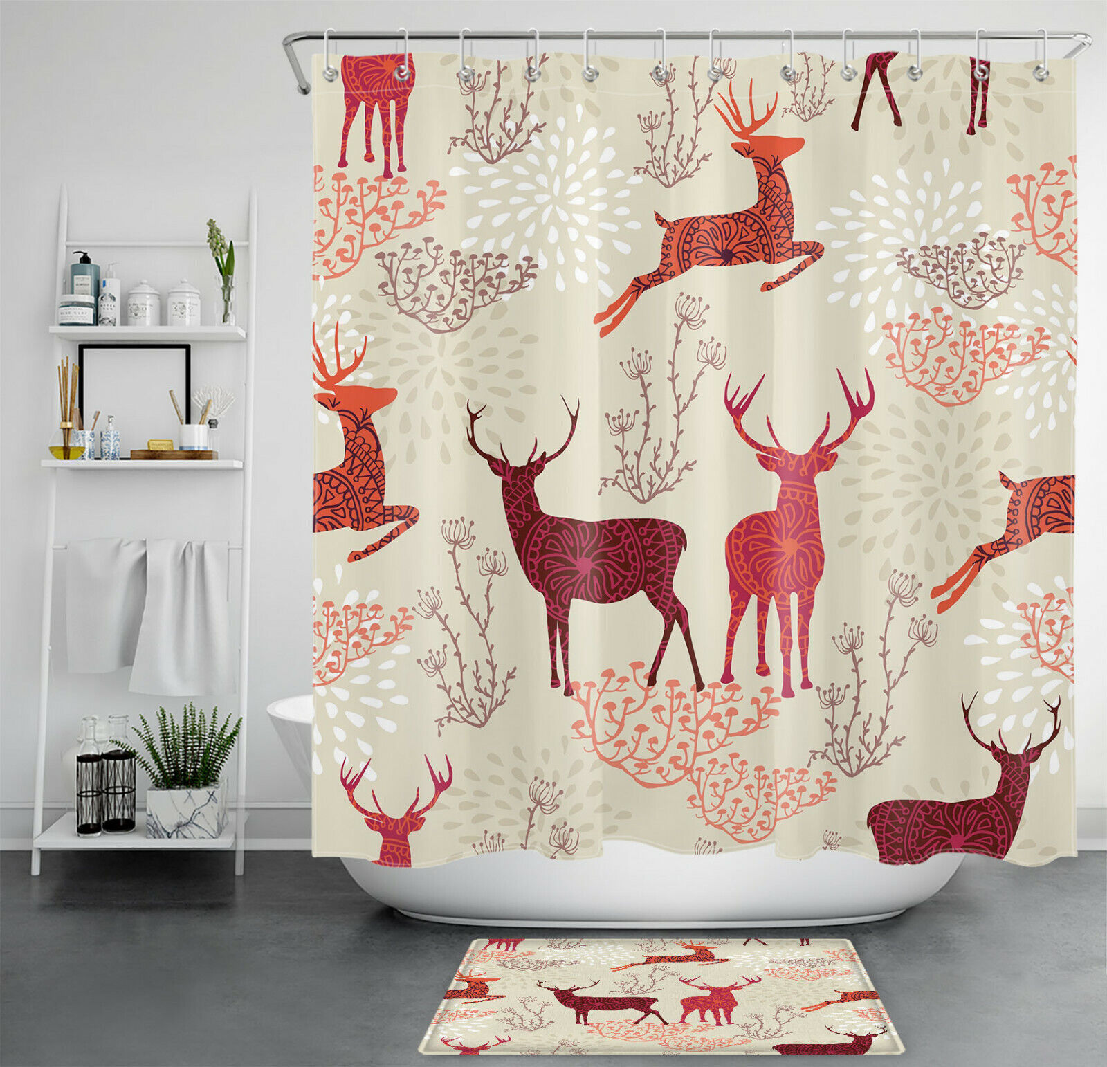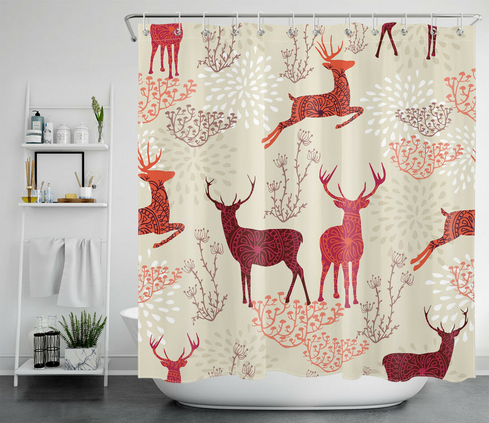 Boho Cartoon Elk Shower Curtain for Rustic Bathroom Decor