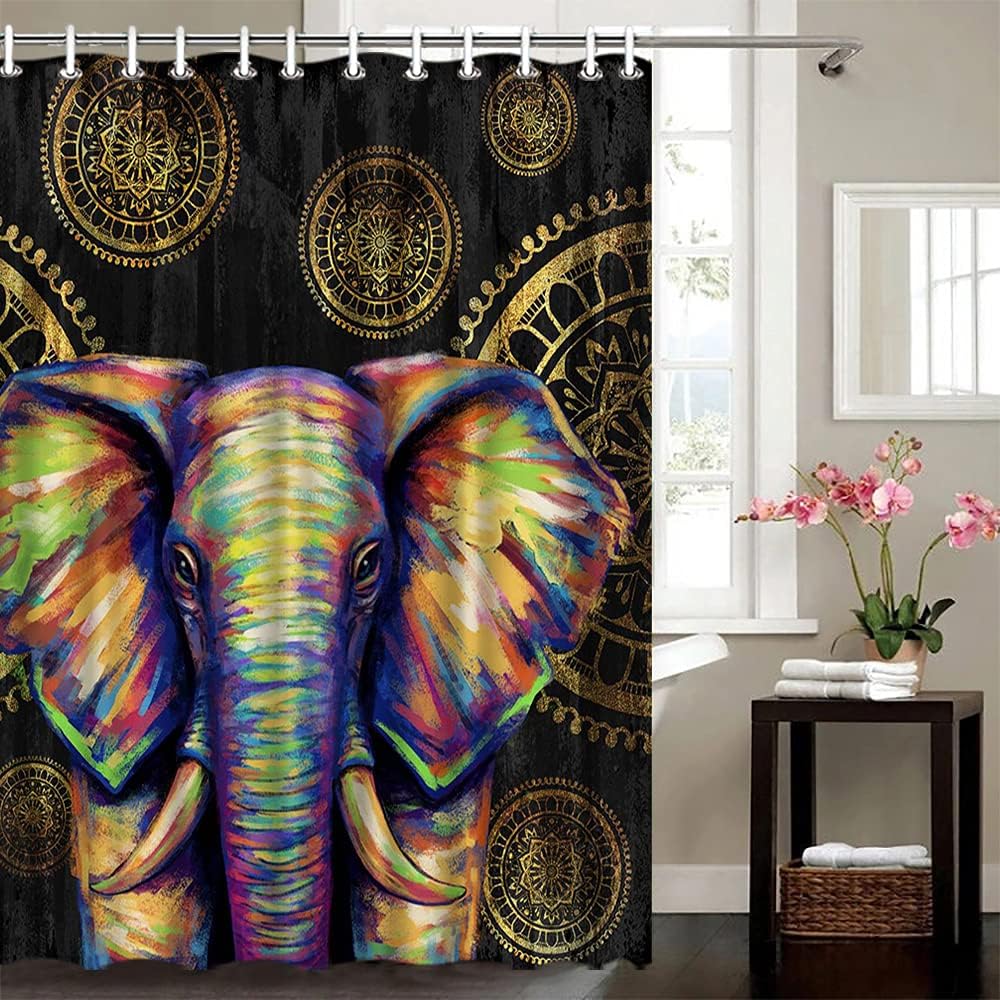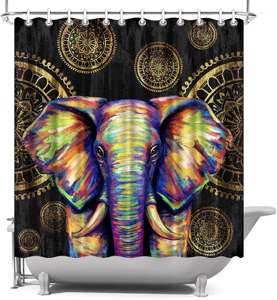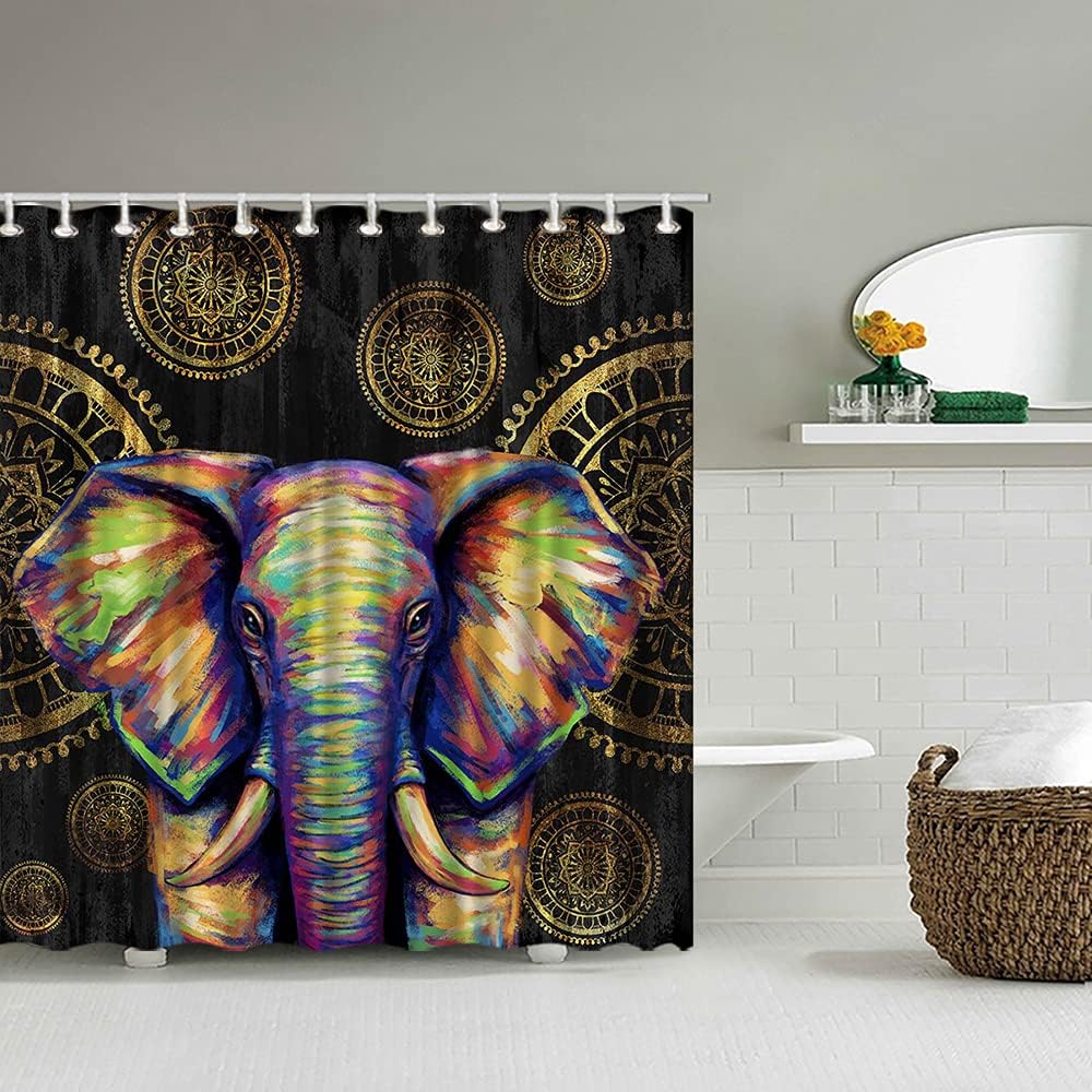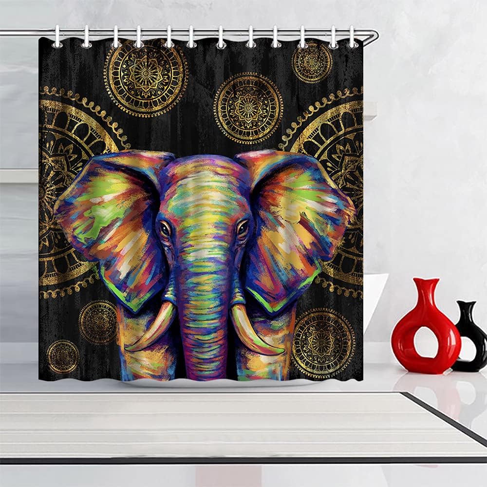 Boho Elephant and Mandala Flower Shower Curtain – African Bathroom Decor